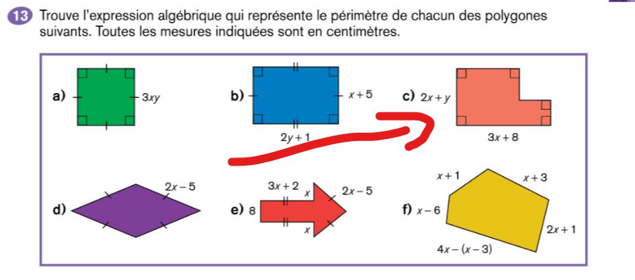 Secondaire 2 • 4aPouvez-vous m'aider dans la question C(Celle qui est encerclée.) à propos des expressions algébriques? Merci.