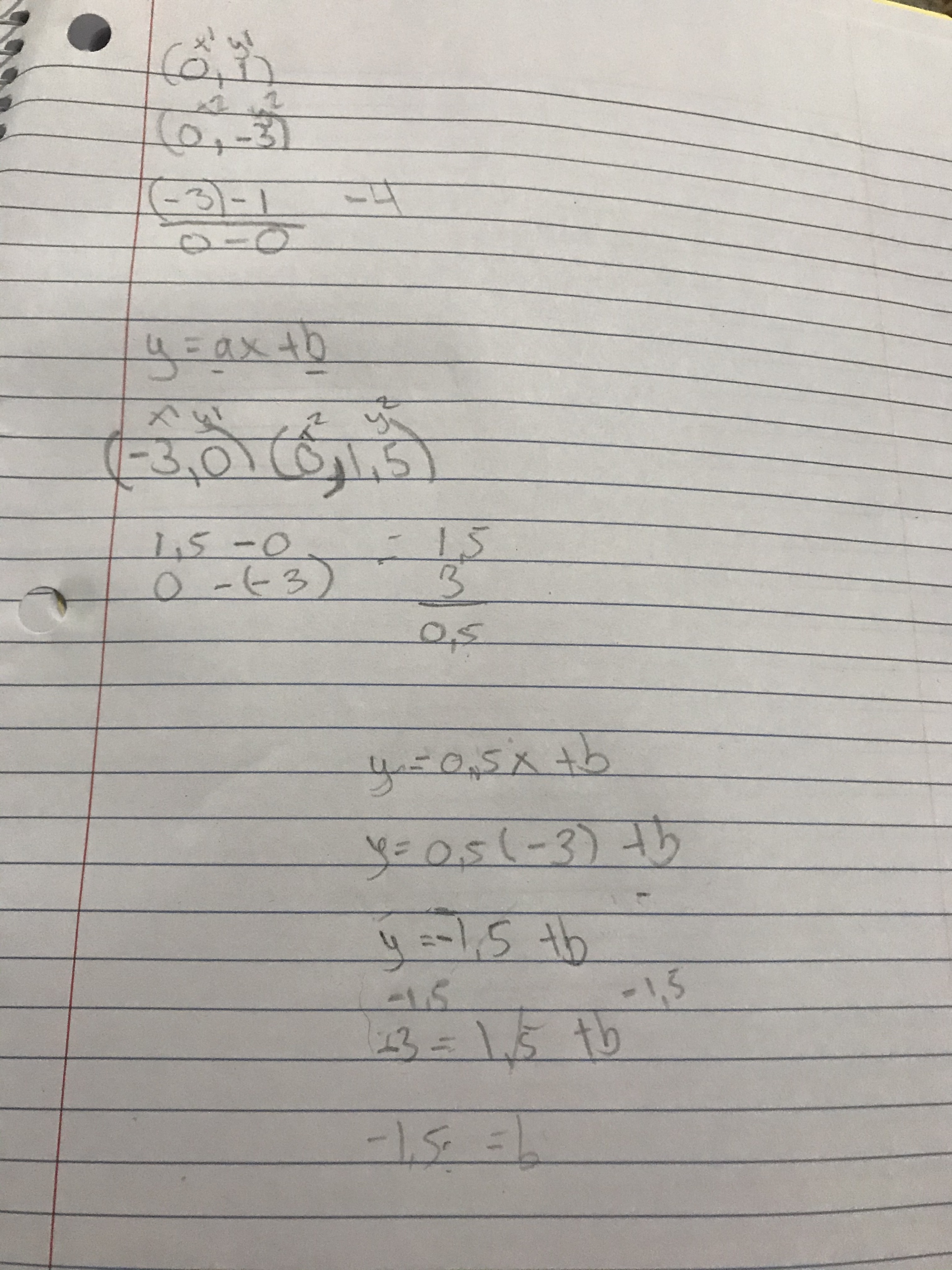 Secondaire 4 • 4aBonjour, je ne trouve pas mon erreur moi ma réponse est 0,5x+-1,5 et non 0,5x+1,5 et merci :)