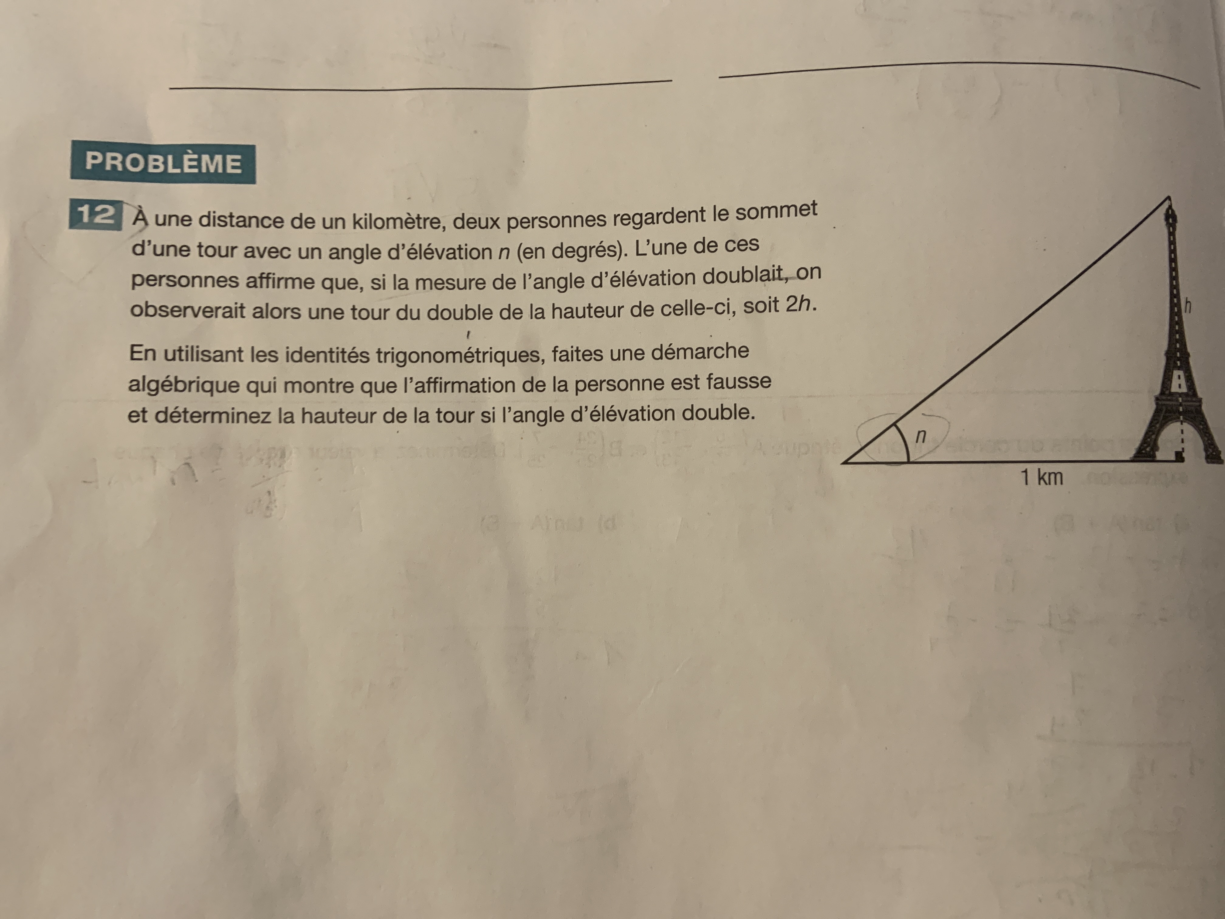 Secondaire 2 • 4aBonjour comment je dois régler ce problème mathématiques?