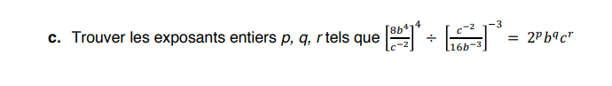 Secondaire 5 • 4abonjour, je dois trouver la valeur des exposants p, q et r. J'ai essayé de simplifier le plus possible, mais je semble être incapable d'isolé les variables.