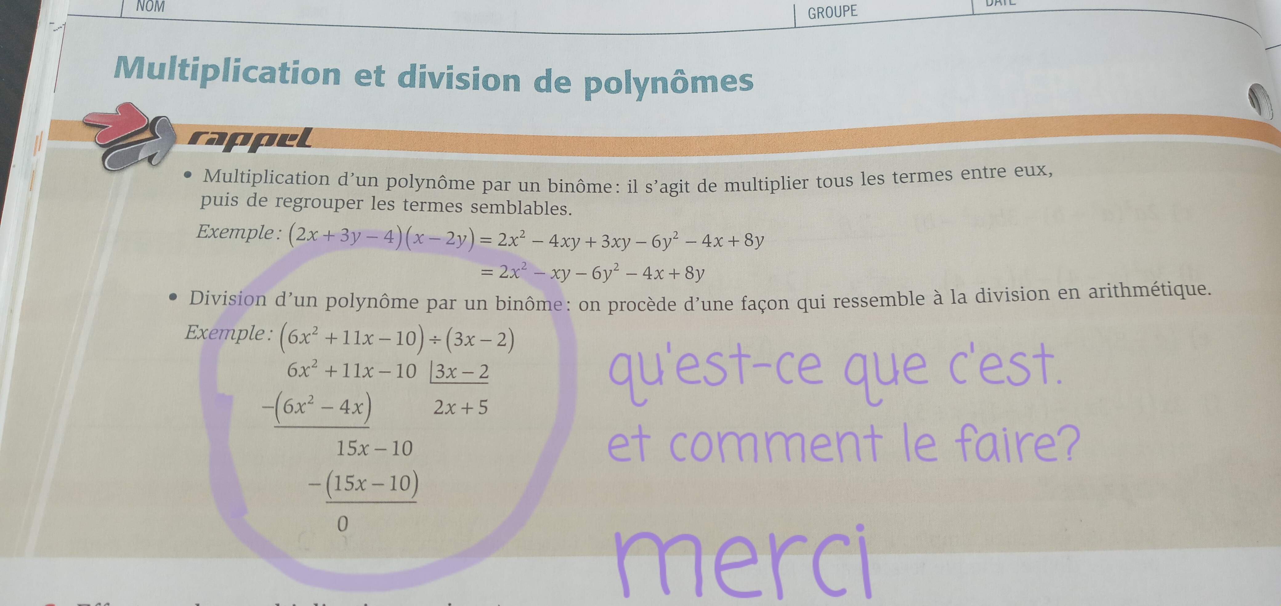 Secondaire 4 • 4aBonjour Mme Katia, je vous remercie pour votre réponse j'ai pris en compte les liens que vous m'avez donné. Mais je n'arrive malheureusement pas à compléter encore certains numéros je vous les faits alors parvenir.
