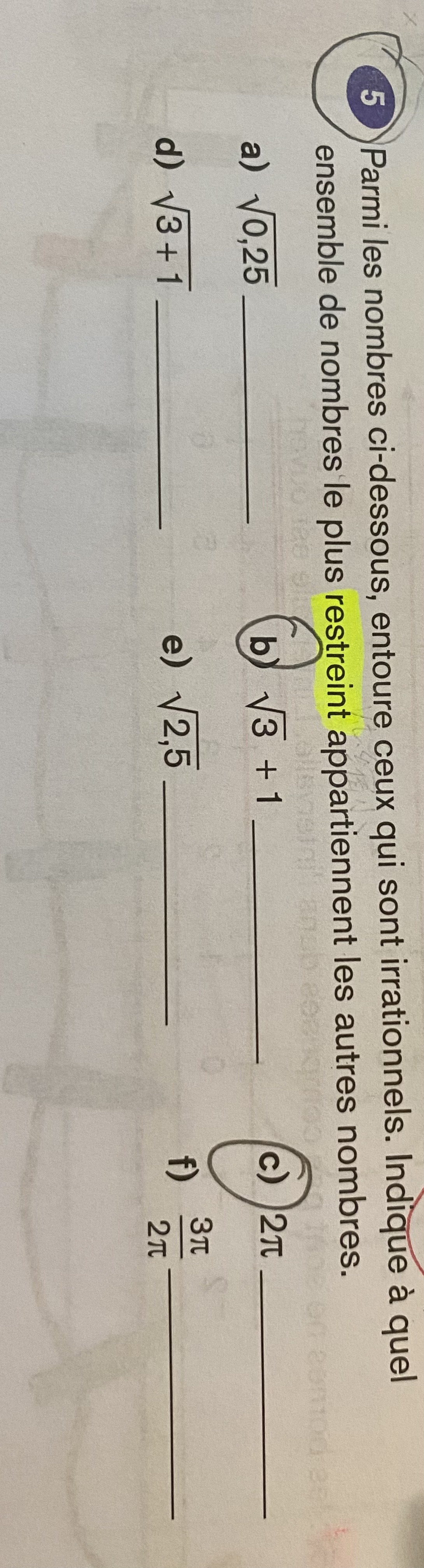Avez vous des exercices de mathématique pour la 5e année du primaire?