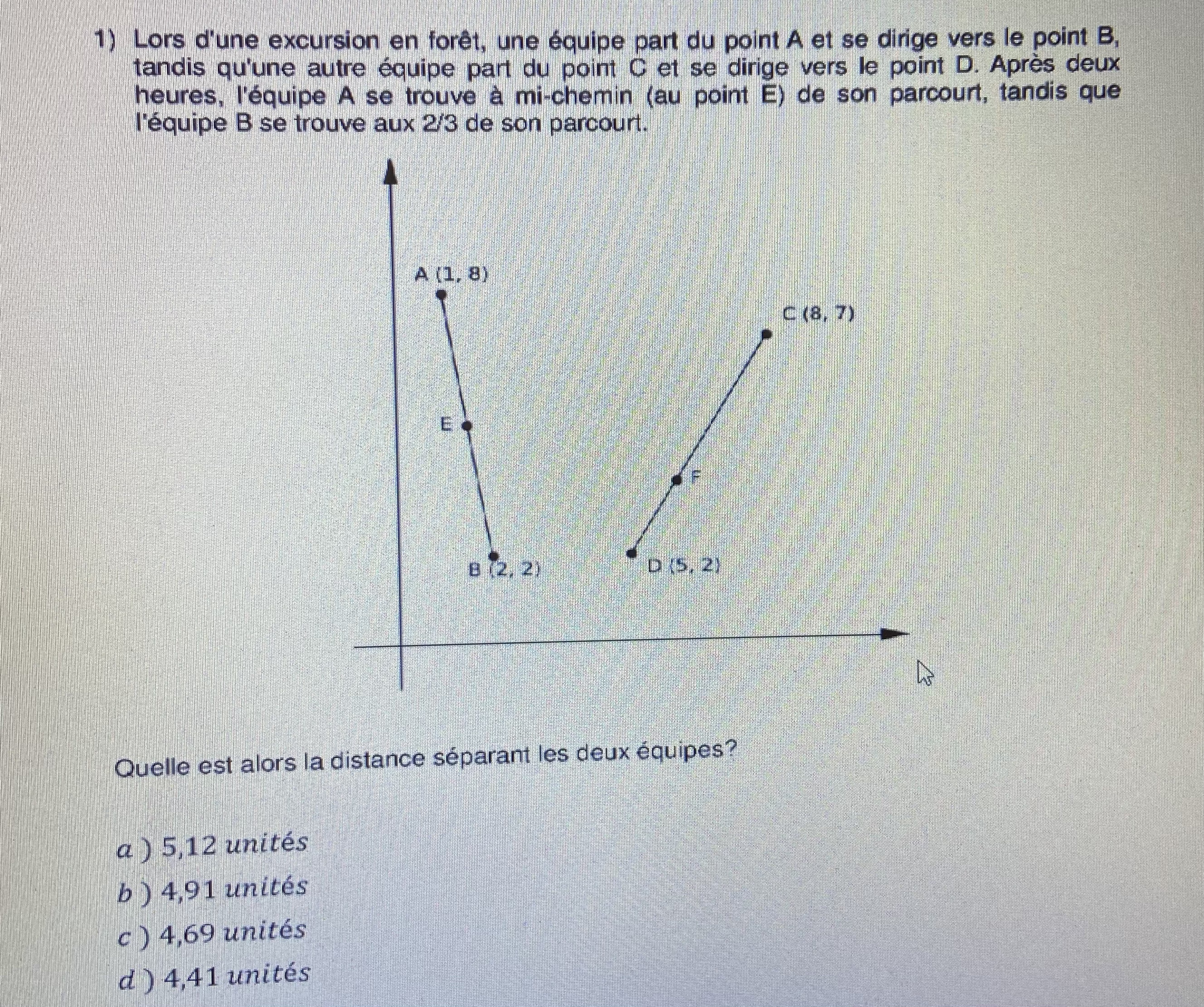 Secondaire 4 • 4aJ’ai de la misère à comprendre cette question:/ il n’y a pas d’équipe B..juste un point B et comment je fais pour trouver les coordonnées du point E?.. merci d'avance