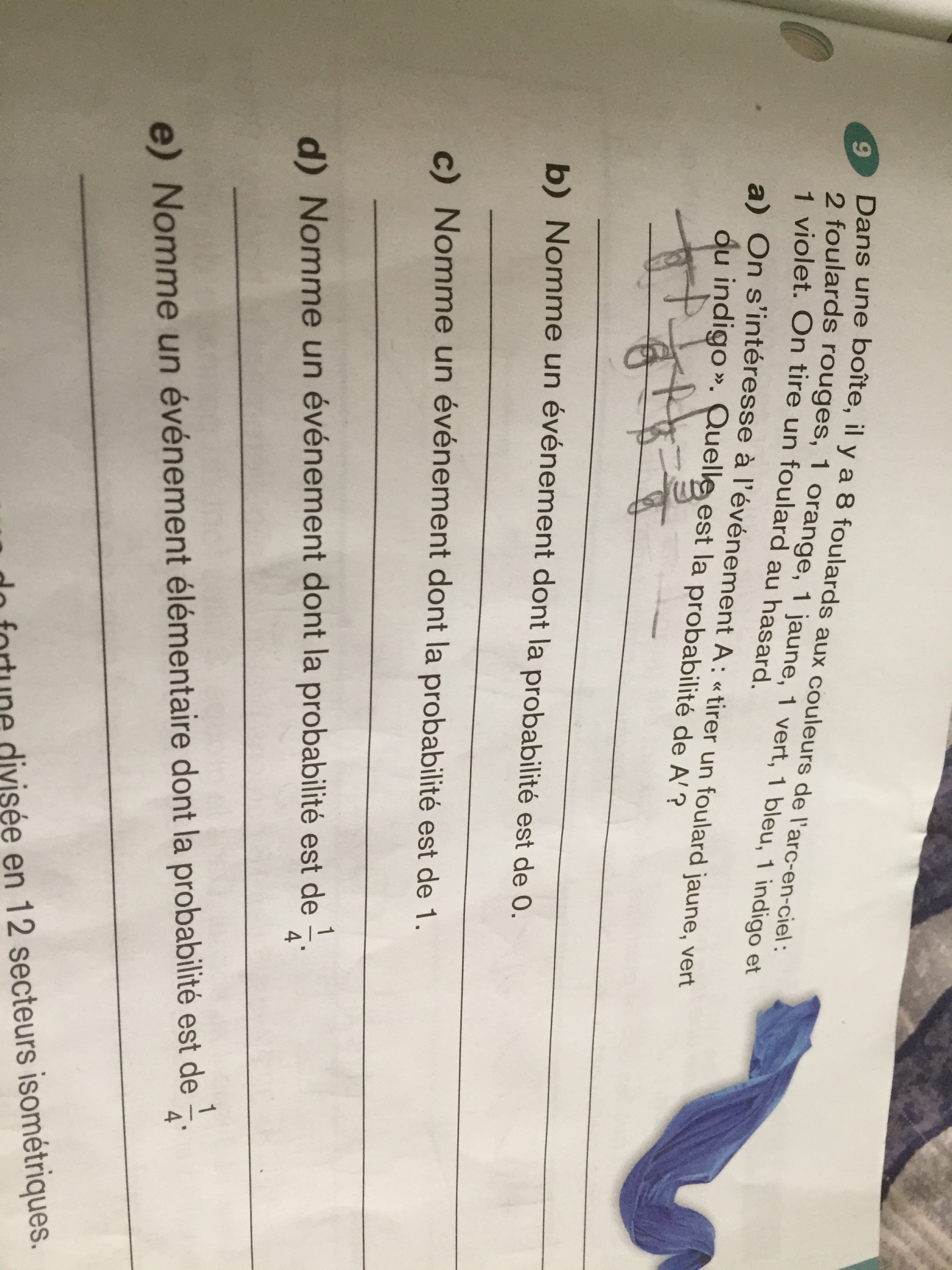 Secondaire 2 • 4aBonjour j’ai une question pour le b) et le c) comment puis-je nommer ces événements?