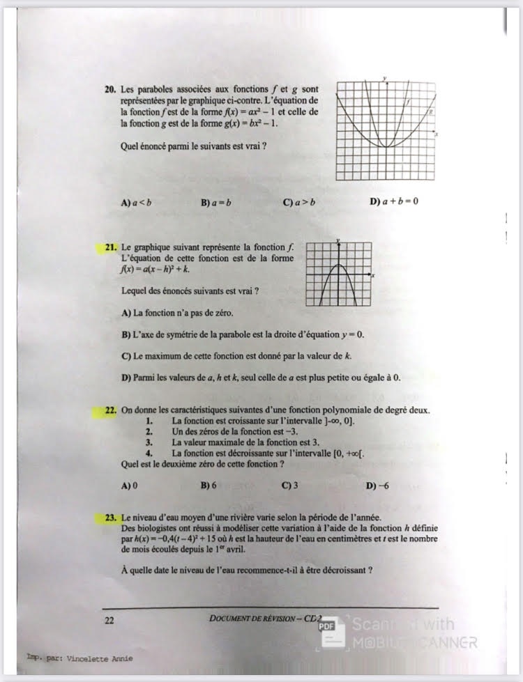 Est-ce que quelqu'un pourrait svp m'expliquer les bonnes réponses aux questions 20 et 22 dont la réponse est de C.Merci et bonne soirée! :)