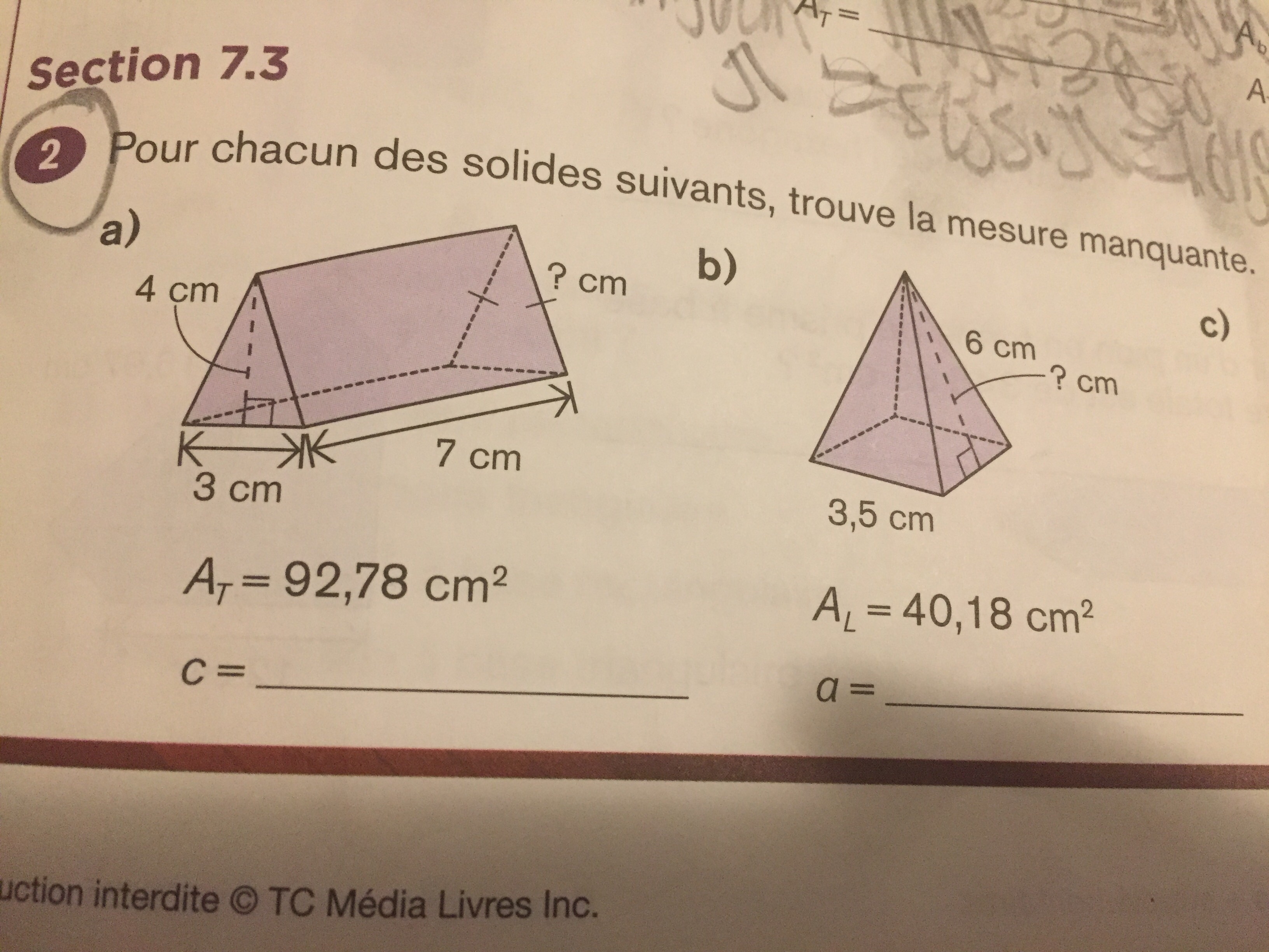 Secondaire 2 • 4aBonjour comment je dois trouver les mesures manquants de ces deux polyèdres?
