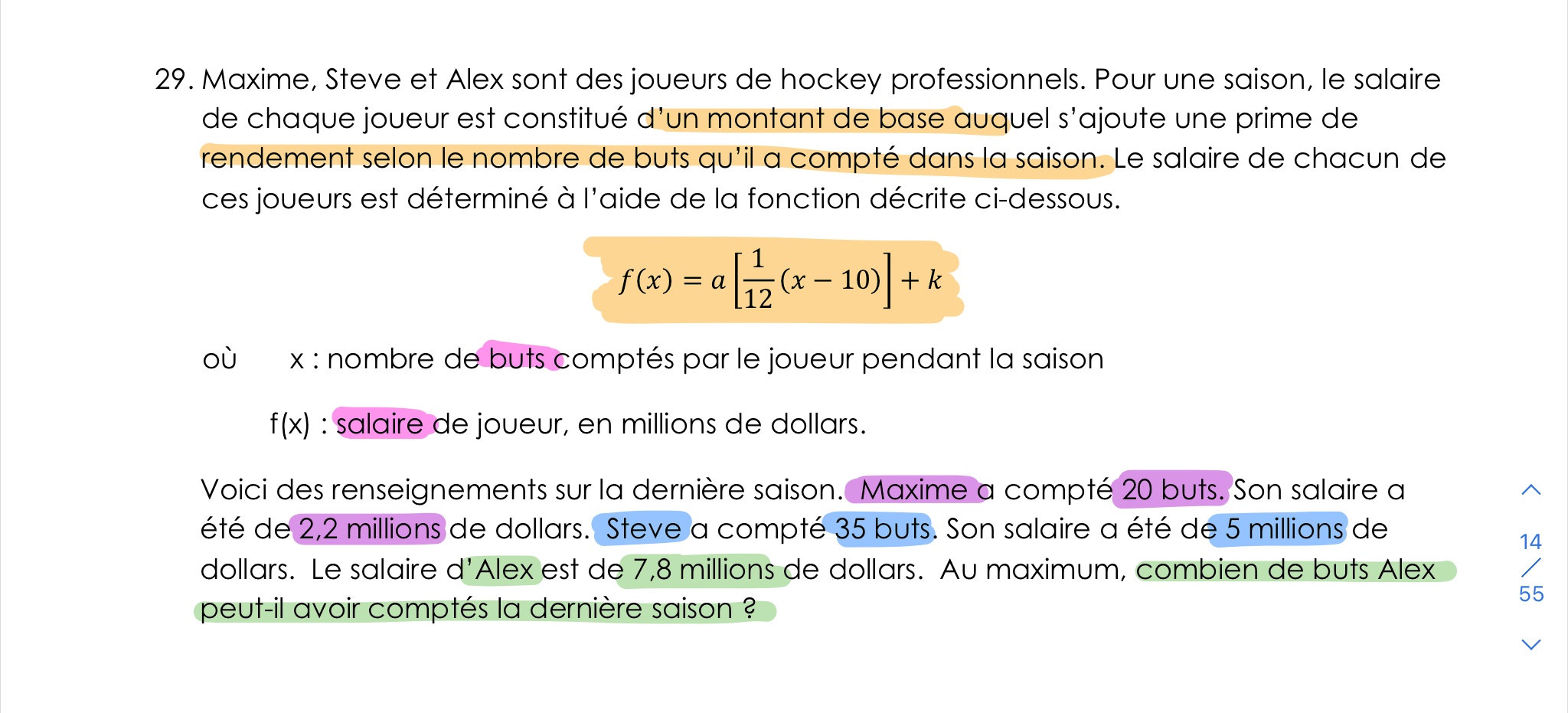 Secondaire 4 • 4aBonjours, j’ai de la difficulté à trouver les variable a et k