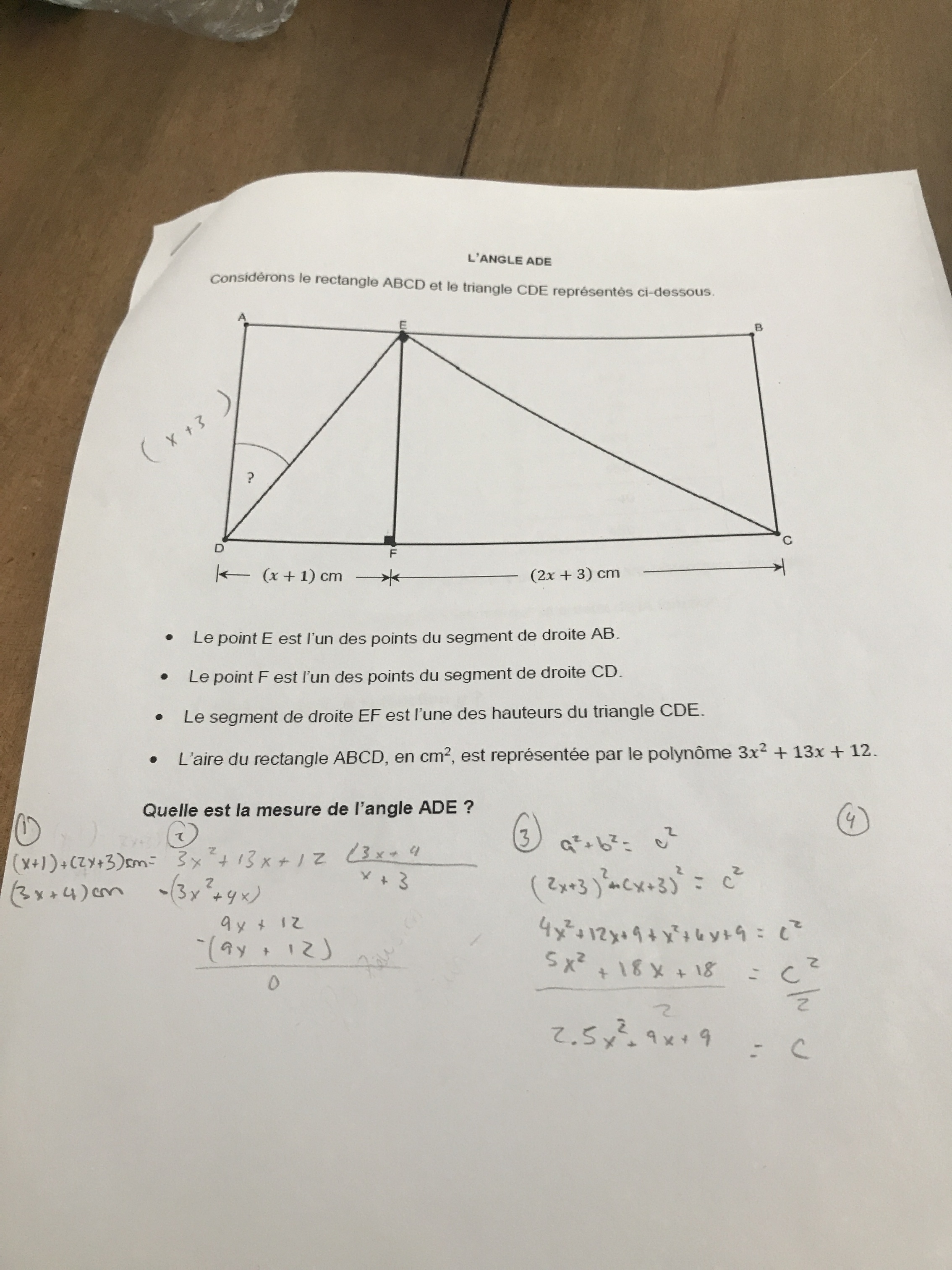 Secondaire 4 • 4aALLO JAI EBSOIN D'AIDE AVEC CETTE EXERCICE SVP CAR JE COMMENT JE DOIS TROUVER LE x :(