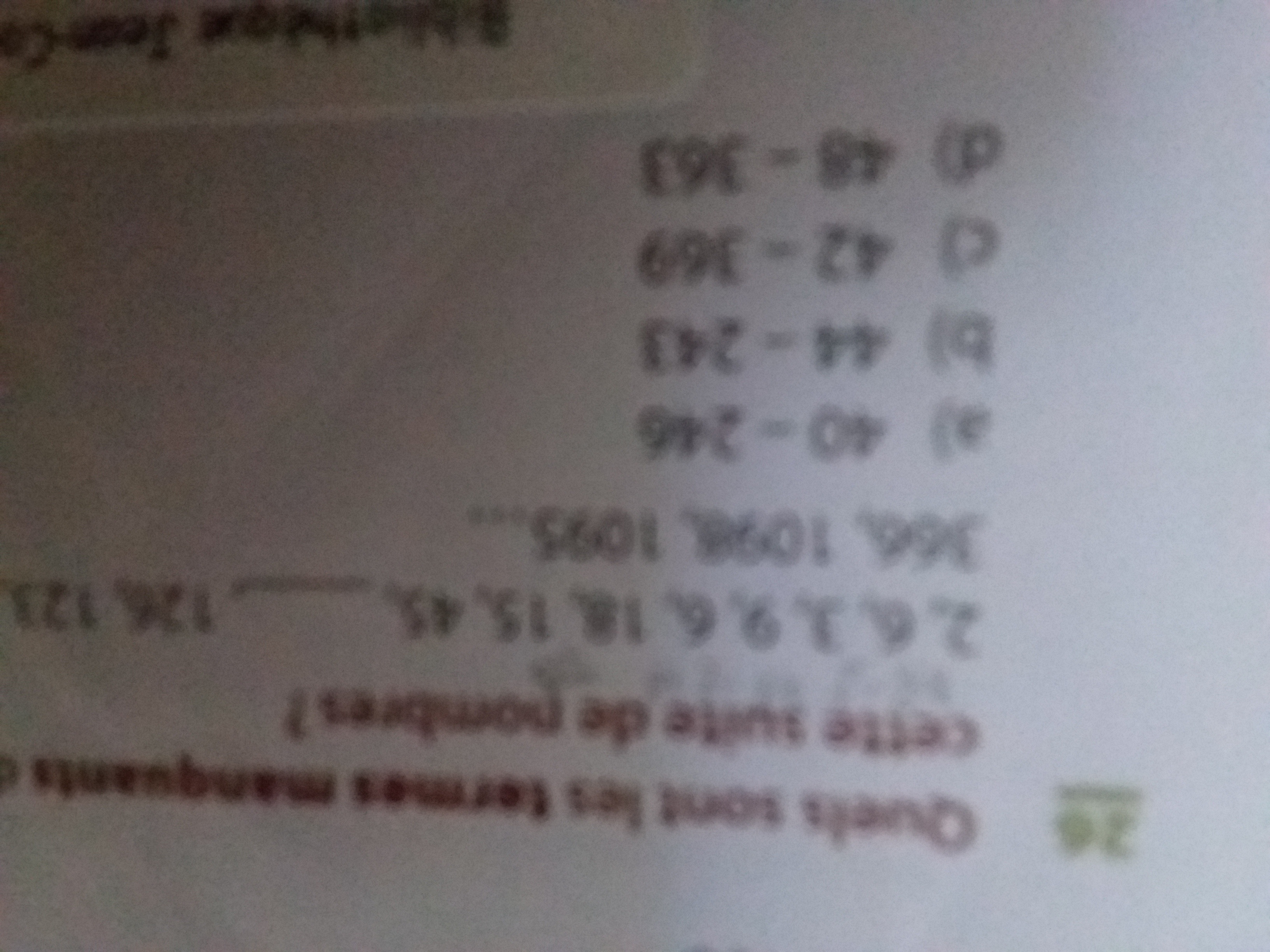 Primaire 5 • 4aJ'ai une question dans le numéro 26 toujours dans le même cahier.Il disent:Quel sont les termes manquants de la suite de nombre: 2,6,3,9,6,18,15,45_,126,123,_,366,1098,1095