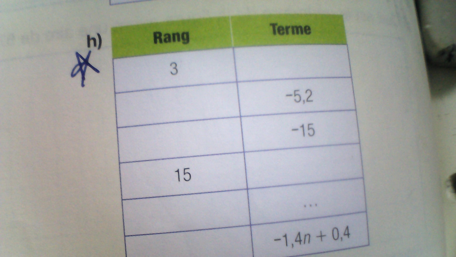 Secondaire 4 • 4aJe dois remplir un tableau, mais il y’a peu d’informations. Je dois trouver l’ordonner à l’origine mais j’ai seulement la pente et l’abscisse a l’origine. Je dois également trouver la pente mais j’ai seulement l’abscisse et l’ordonner à l’origine