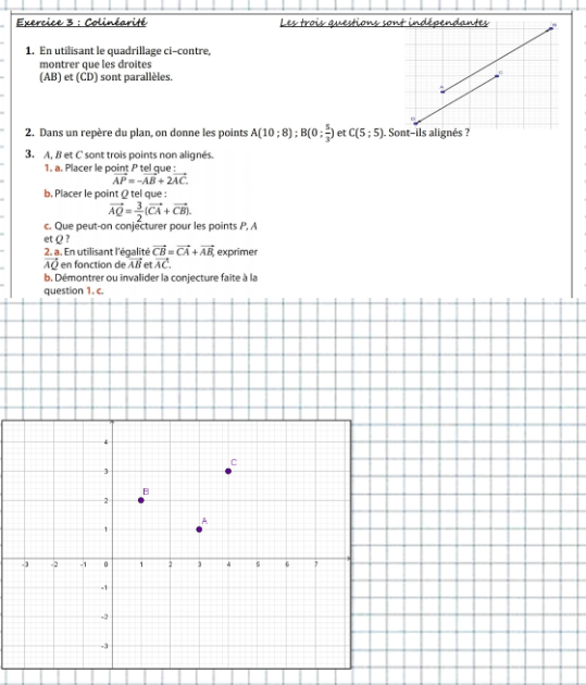 1.a. Placer le point P tel que : AP= -AB+2AC