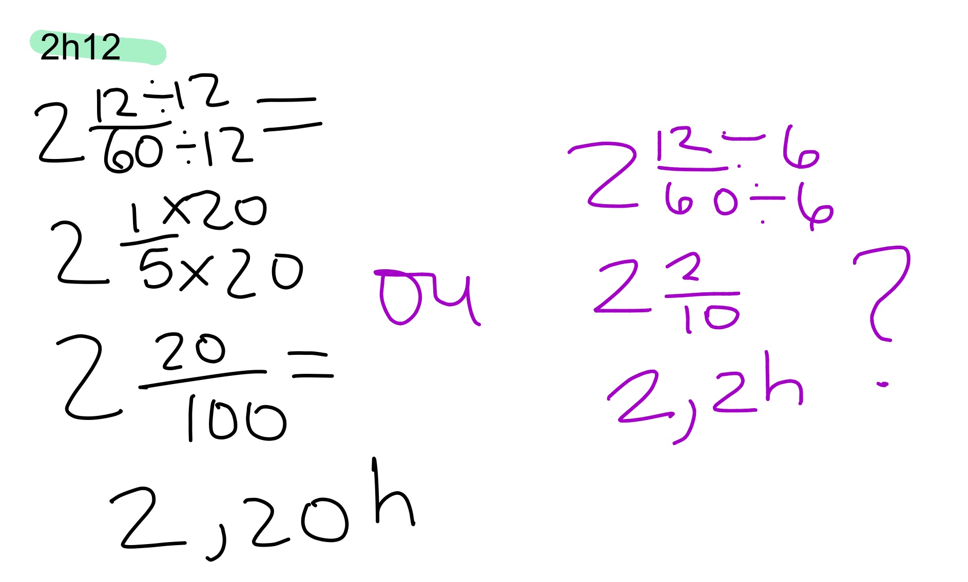 on dit que 2h12 min. est égal à 2,20 heures, mais est ce que ça peut être 2,2 heures aussi?