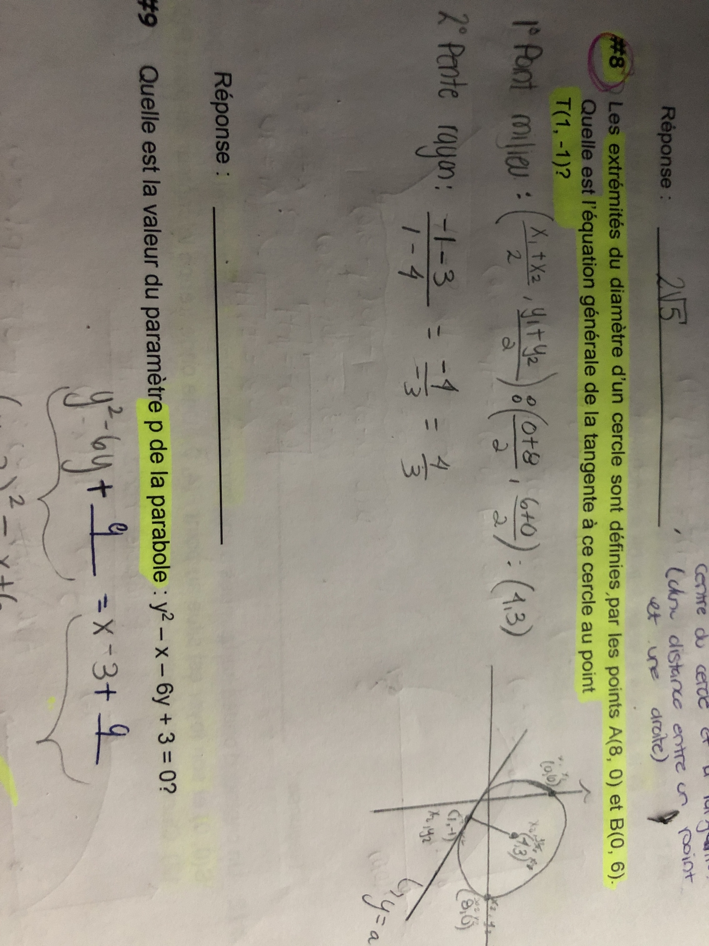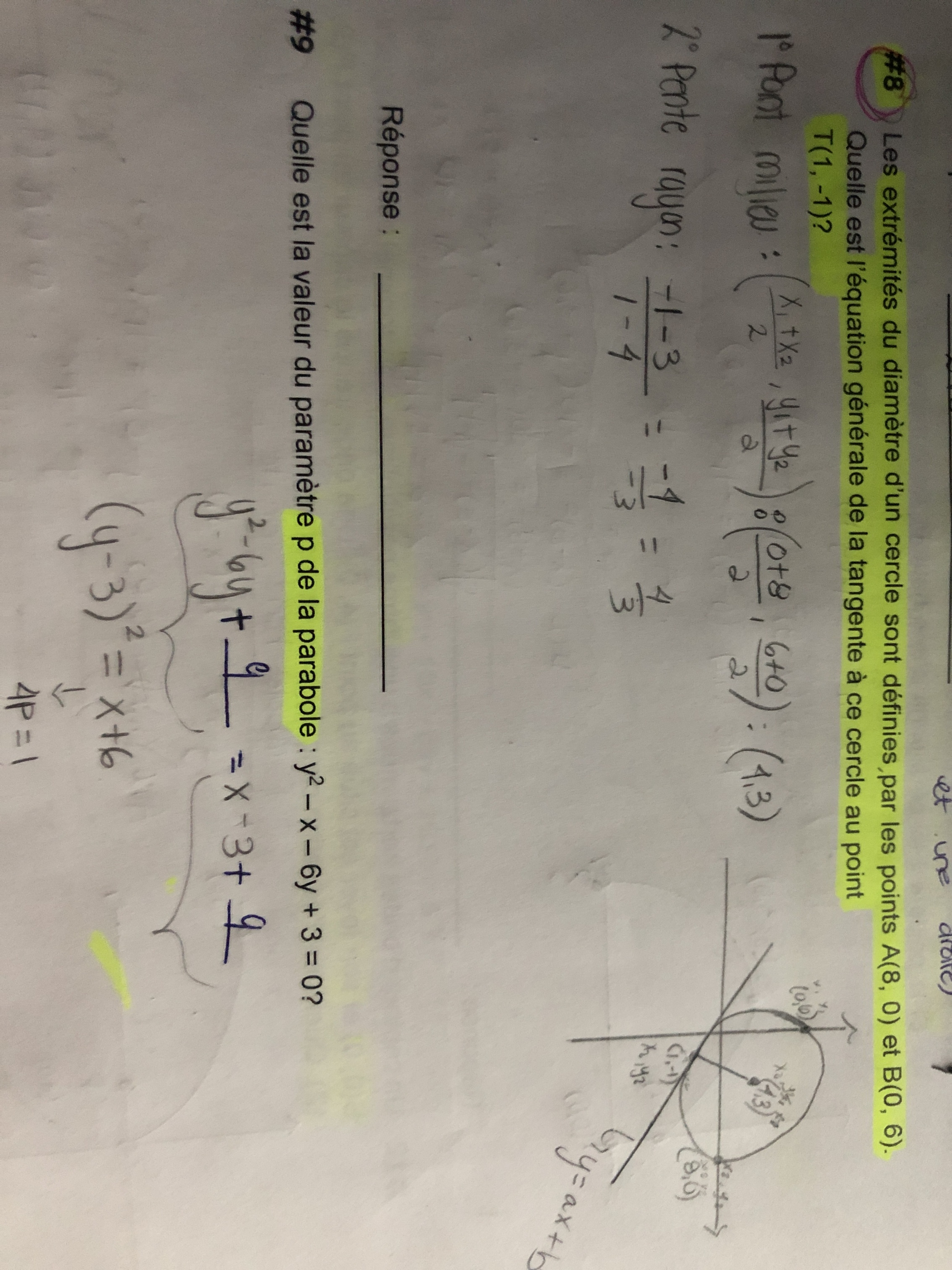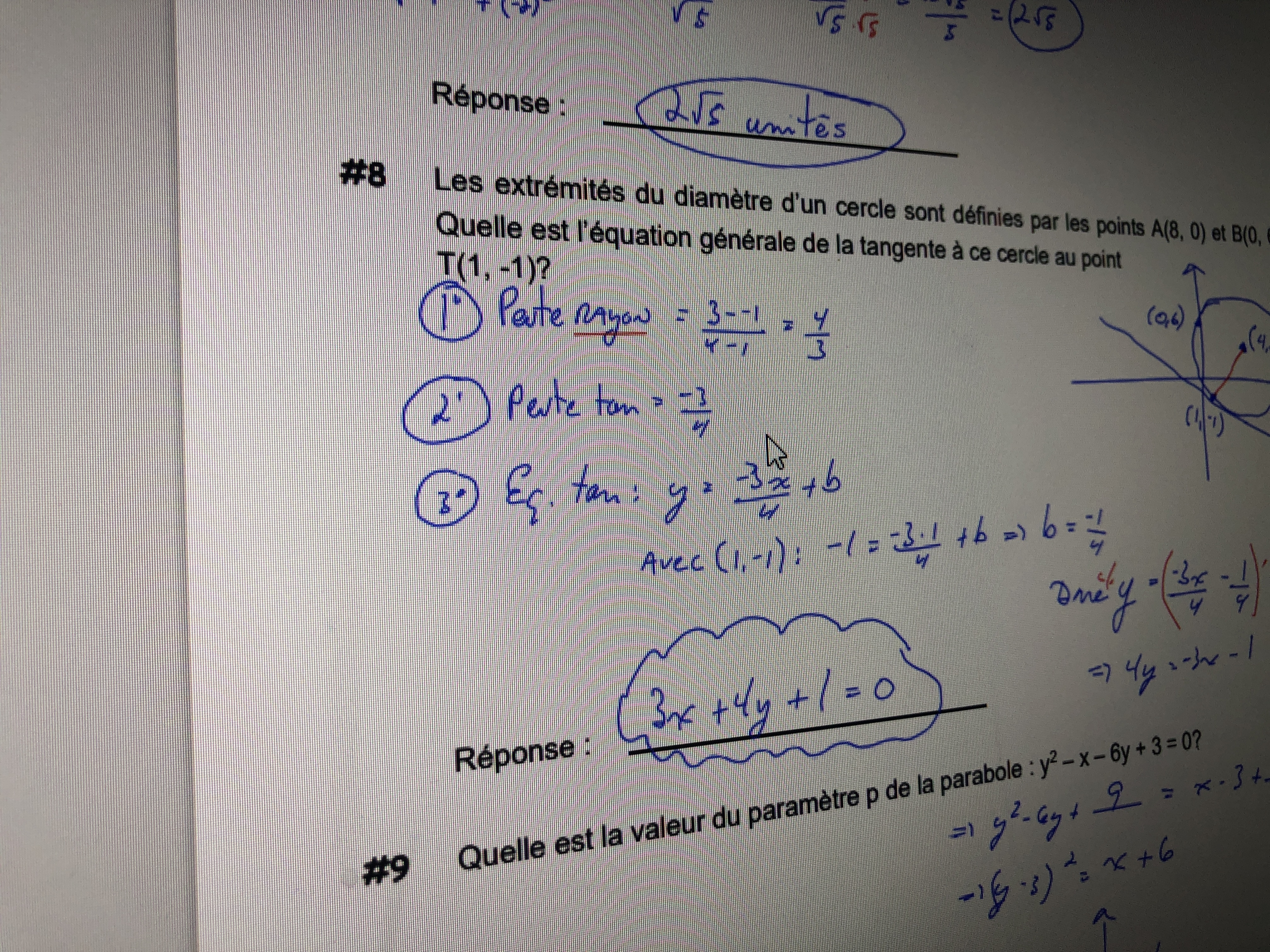 Secondaire 5 • 4aBonjour , j’ai pas compris comment je vais trouver l’autre extrémité de ce diamètre , pouvez vous m’aider svp ?
