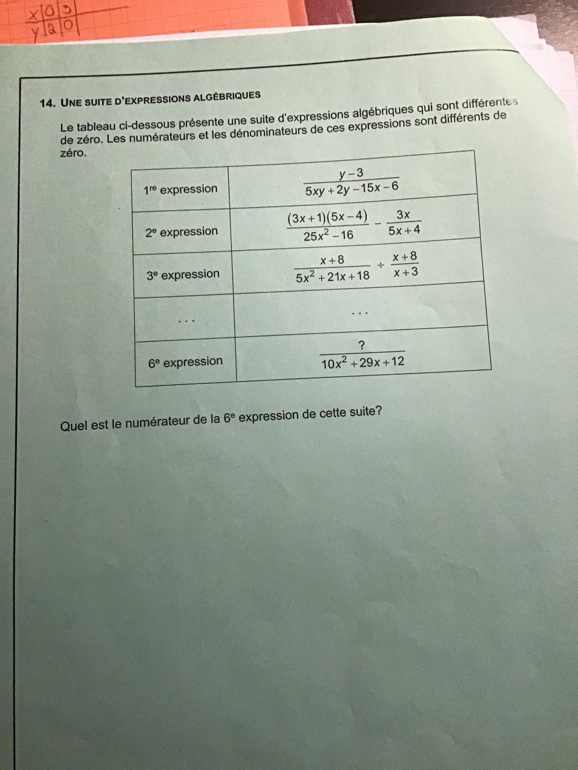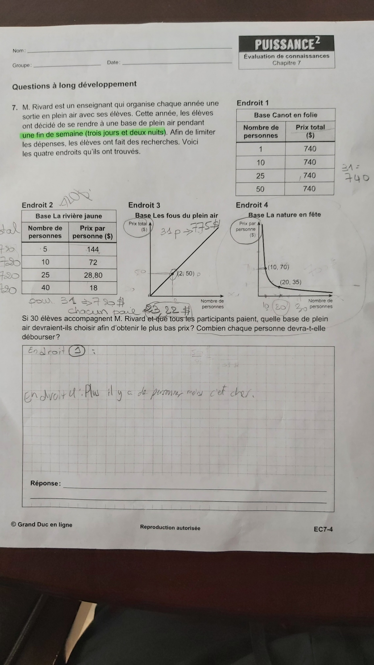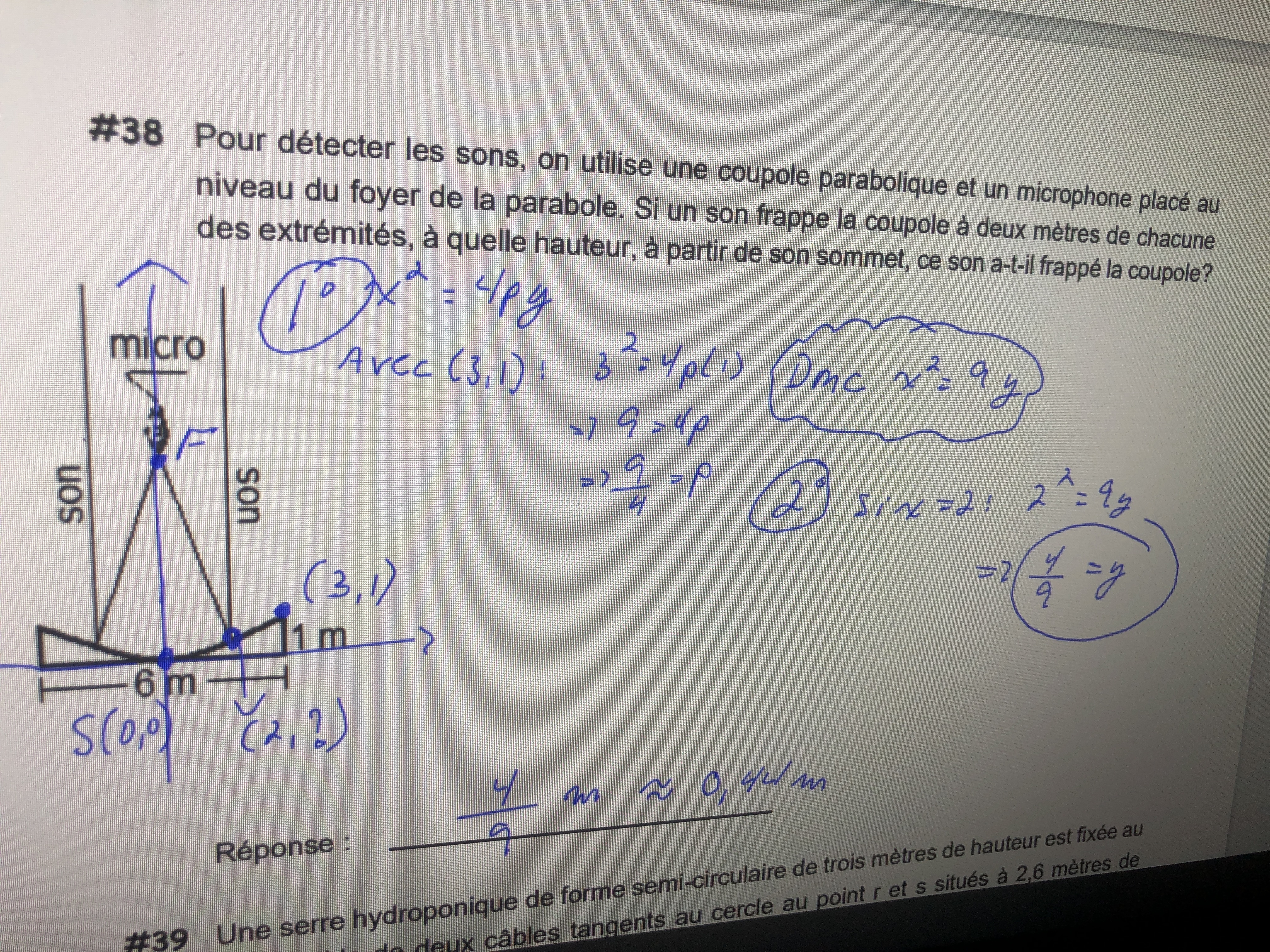 Secondaire 4 • 4aBonjour, pour résoudre ce problème, j’ai fait quelques calcules, mais je ne suis pas sure qu’ils sont bons. J’ai des doutes. Est-ce que vous pouvez s’il vous plaît me dire s’ils font du sens? Merci beaucoup!