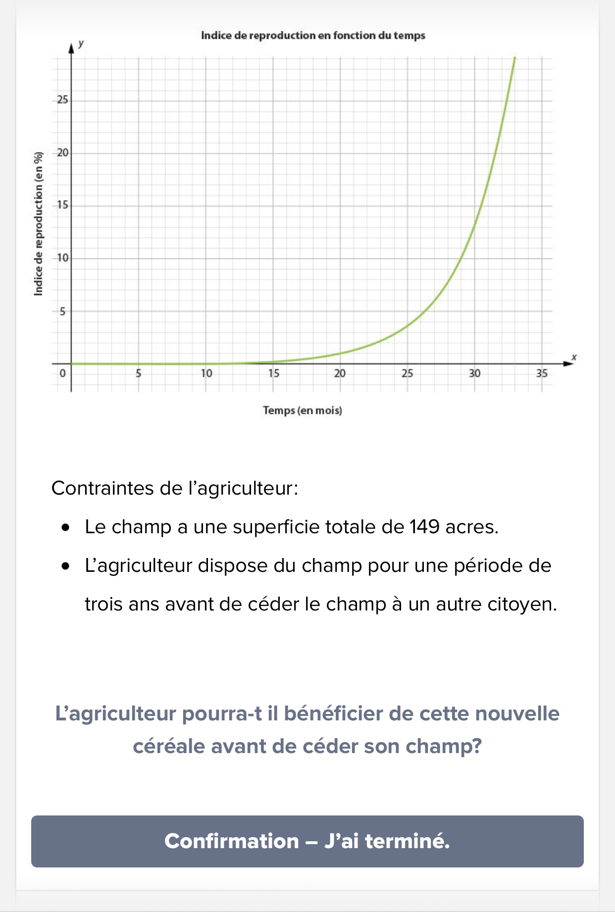 Secondaire 4 • 4asalut, j’ai beaucoup de difficulté avec la compréhension de ce problème, à cause de la langue et je ne suis pas sûre du type de fonctions qu’il faut utiliser, j’ai pensé à logarithmique, exponentielle ou carré