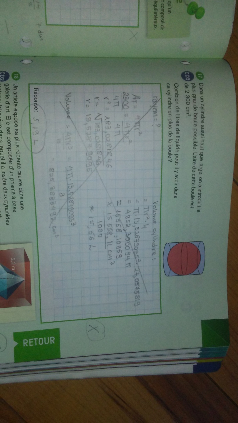 Secondaire 3 • 4aOn doit arriver à 5,19 Litres,mais je ne sais pas comment.