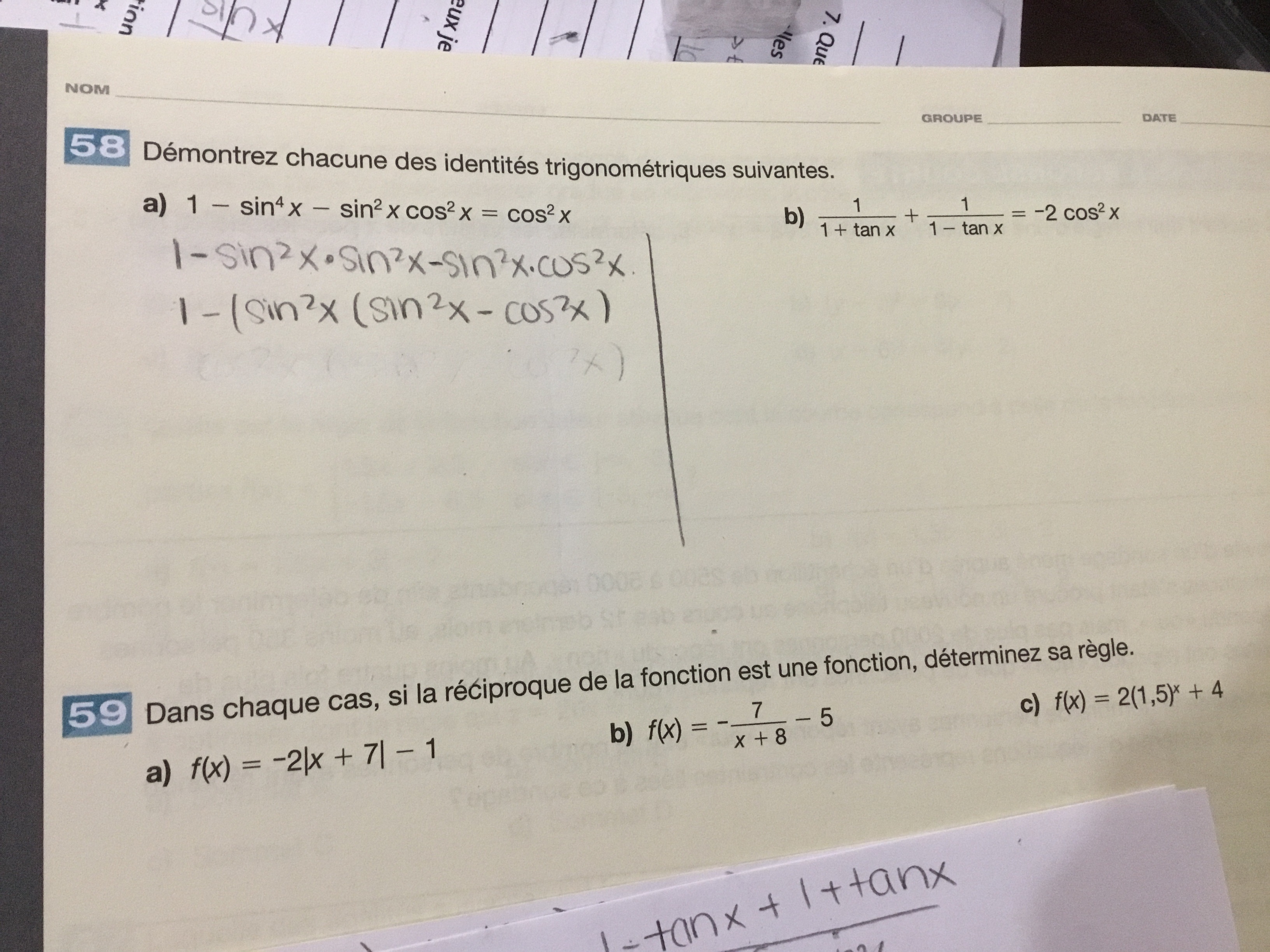 Secondaire 5 • 4aBonjour pourriez vous m’aider avec 58 svp?