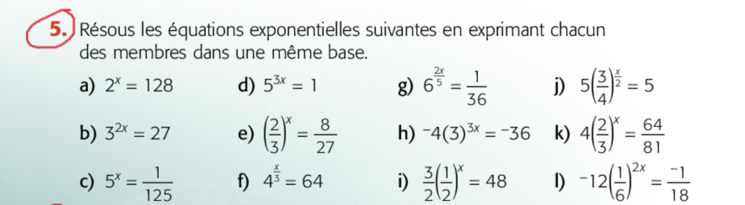 Secondaire 4 • 4abonjour je suis en secondaire 4 TS il y a ce numéros 5 de a à L que je ne comprends pas stp je suis plus visuelle si je vois les solutions je peut comprendre et numéros 6 aussi a , b et c merci du fond du coeur .