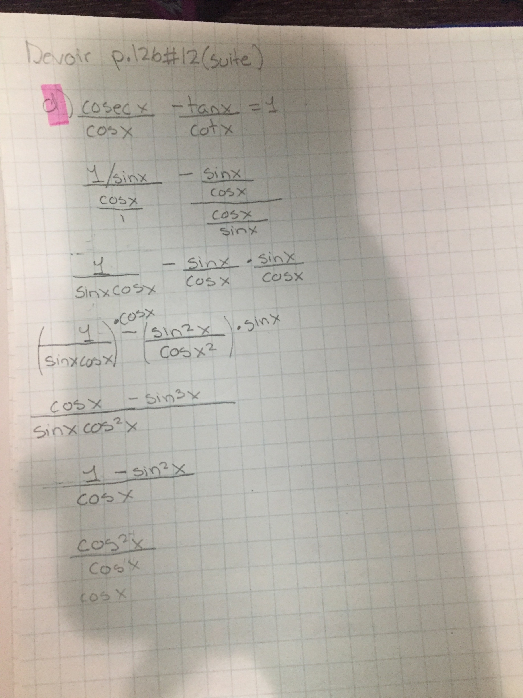 Secondaire 5 • 4aJe n’arrive pas à démontrer cette équation