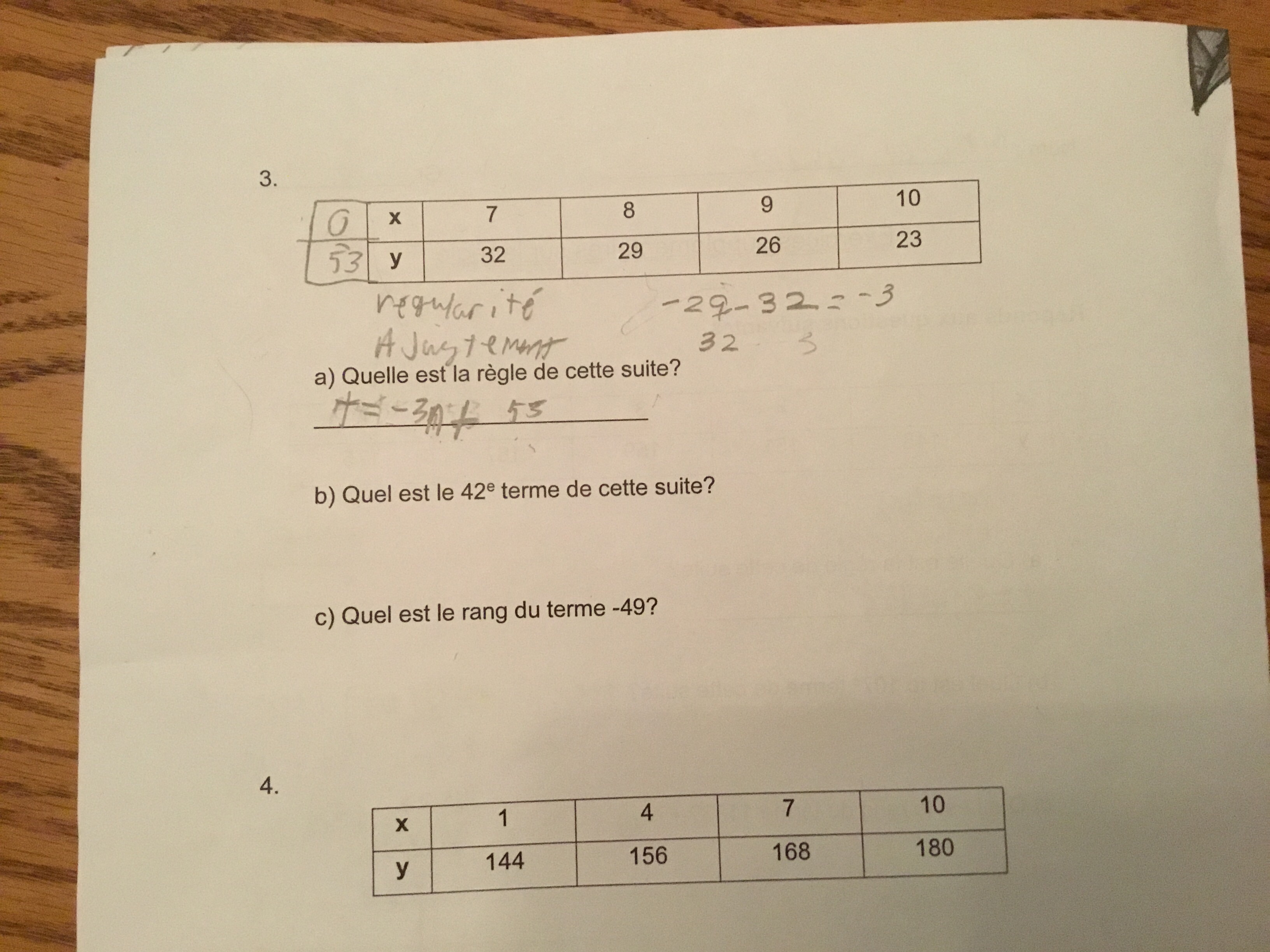 Secondaire 1 • 4aBonsoir,j’aimerais comprendre comment faire pour trouver le terme et le rang du terme! Merci