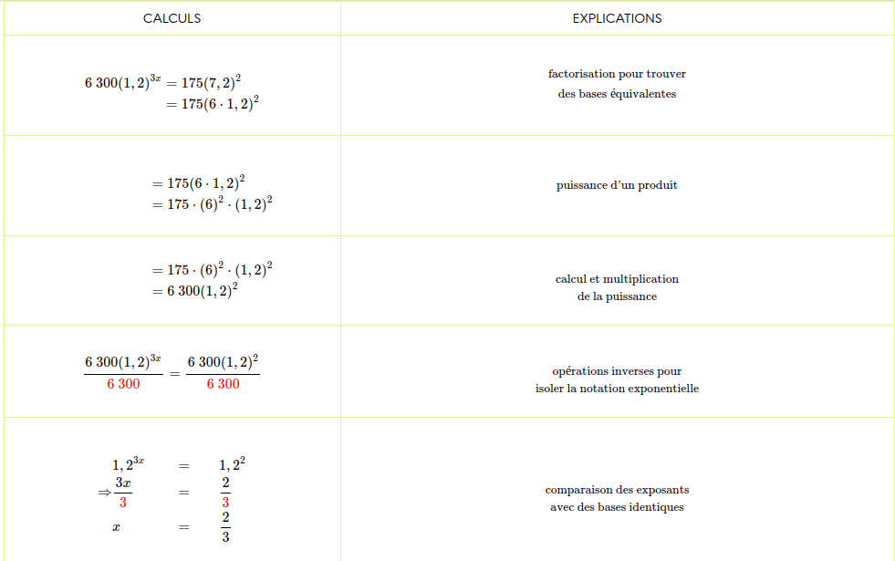 Je suis en étude de révision sur votre page aide-mémoire-mathématiques- secondaire 5- CST et je dois avouer que ça m'aide énormément. Toutefois, à la section propriétés de la notation exponentielle nous retrouvons le calcul ci dessous:Mais je ne comprend pas comment le calcul a été fait, donc ça serais apprécier si je pourrais recevoir des explications vis-à-vis cet exercice.