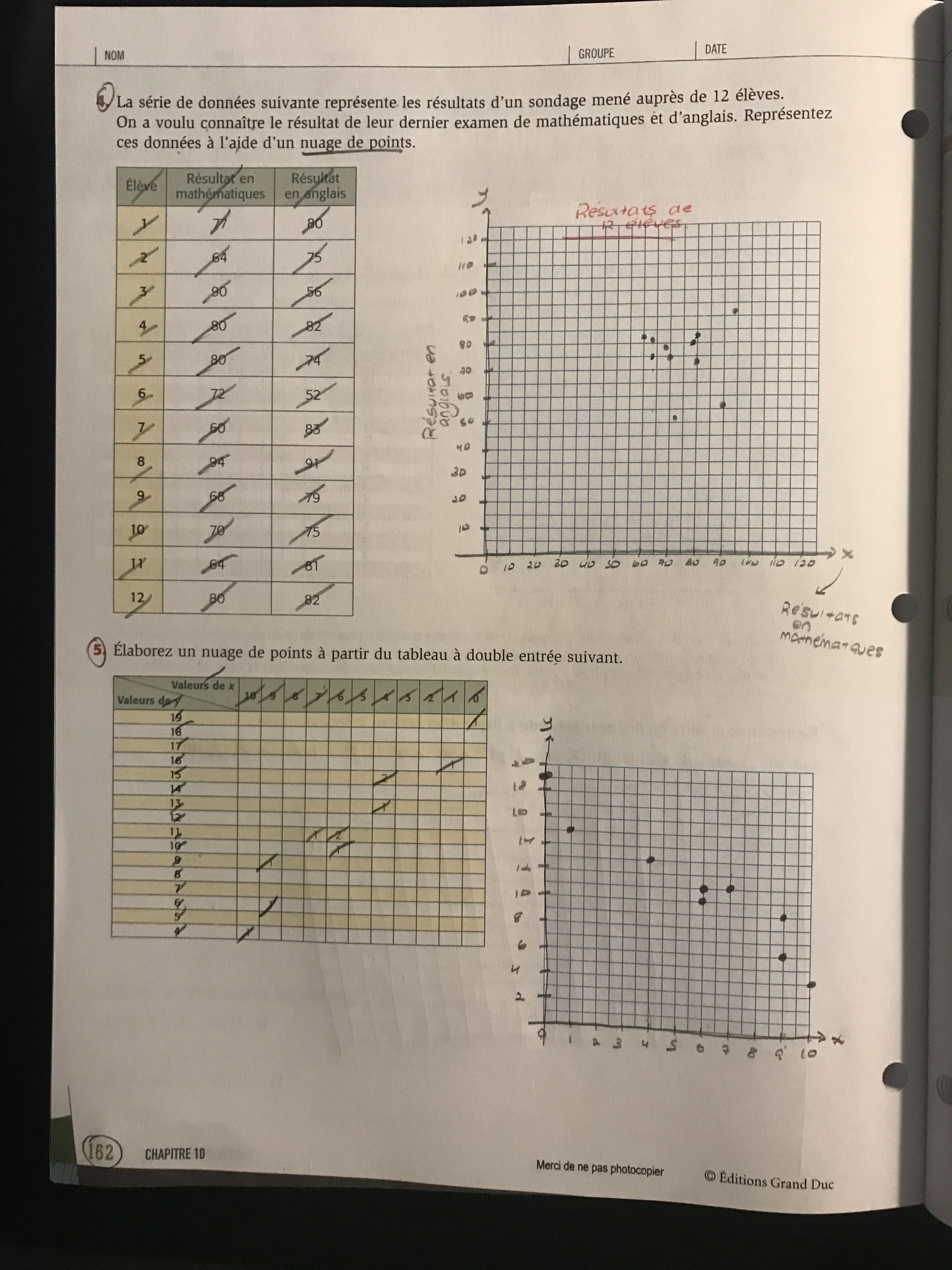 Puis-je savoir si j'ai la bonne réponse dans le numéro 3 et 4, car je n'ai pas nécessairement la même chose que dans le corrigé.Désolé, pour mon travail super laid dans le numéro 3. Je n'ai pas utilisé de règle.