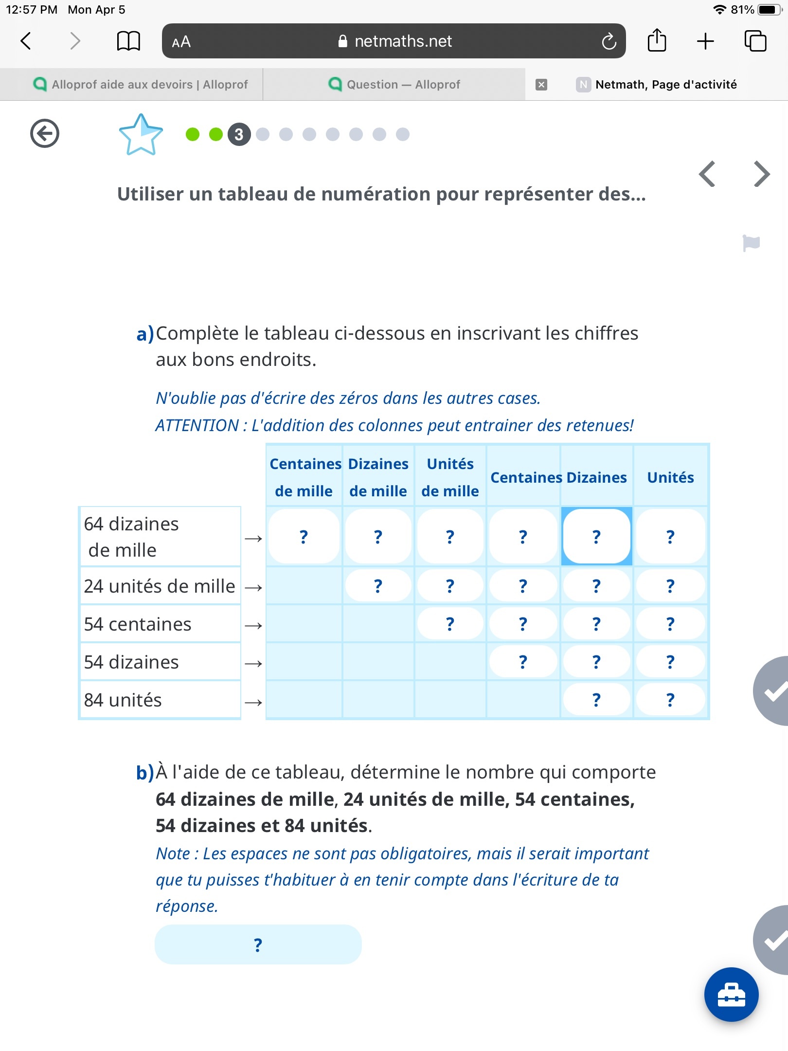 Primaire 5 • 4aBonjour la madame m’as pas explicer le numéro b.Voilà le numéro