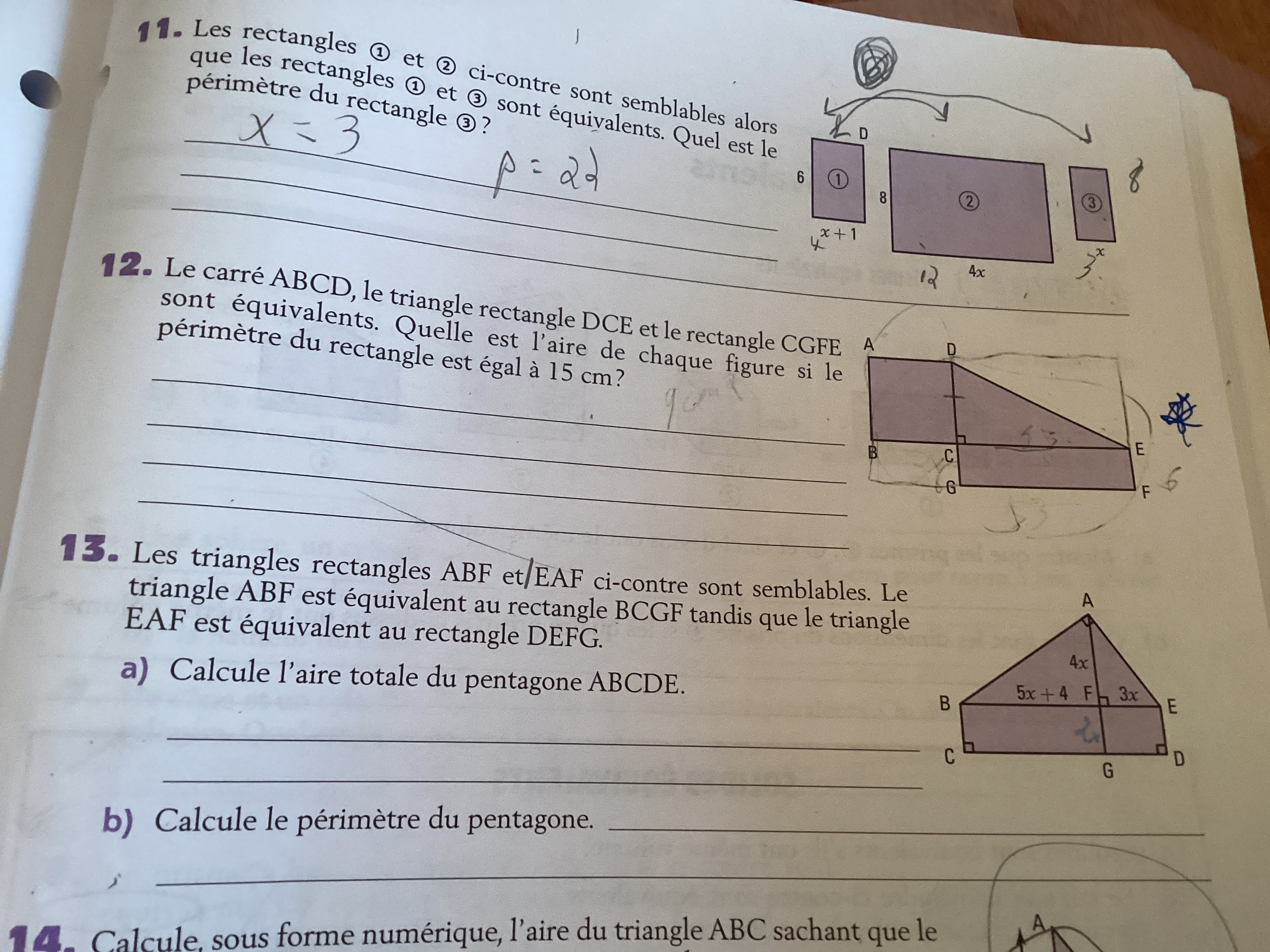Secondaire 2 • 25jBonjour, jai besoin dexplication pour un calcul dexpression algebrique qui represente le perimetre dune figure