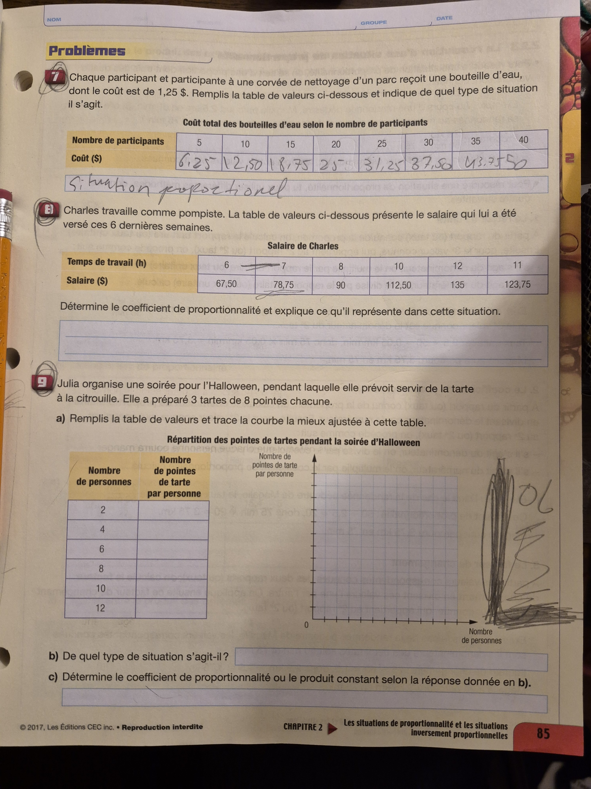 Secondaire 2 • 27jJe ne comprends pas ce quil faut faire. Je n'ai aussi pas compris la matière qui est les situation de proportionnalité et les situations inversement proprtionelles.