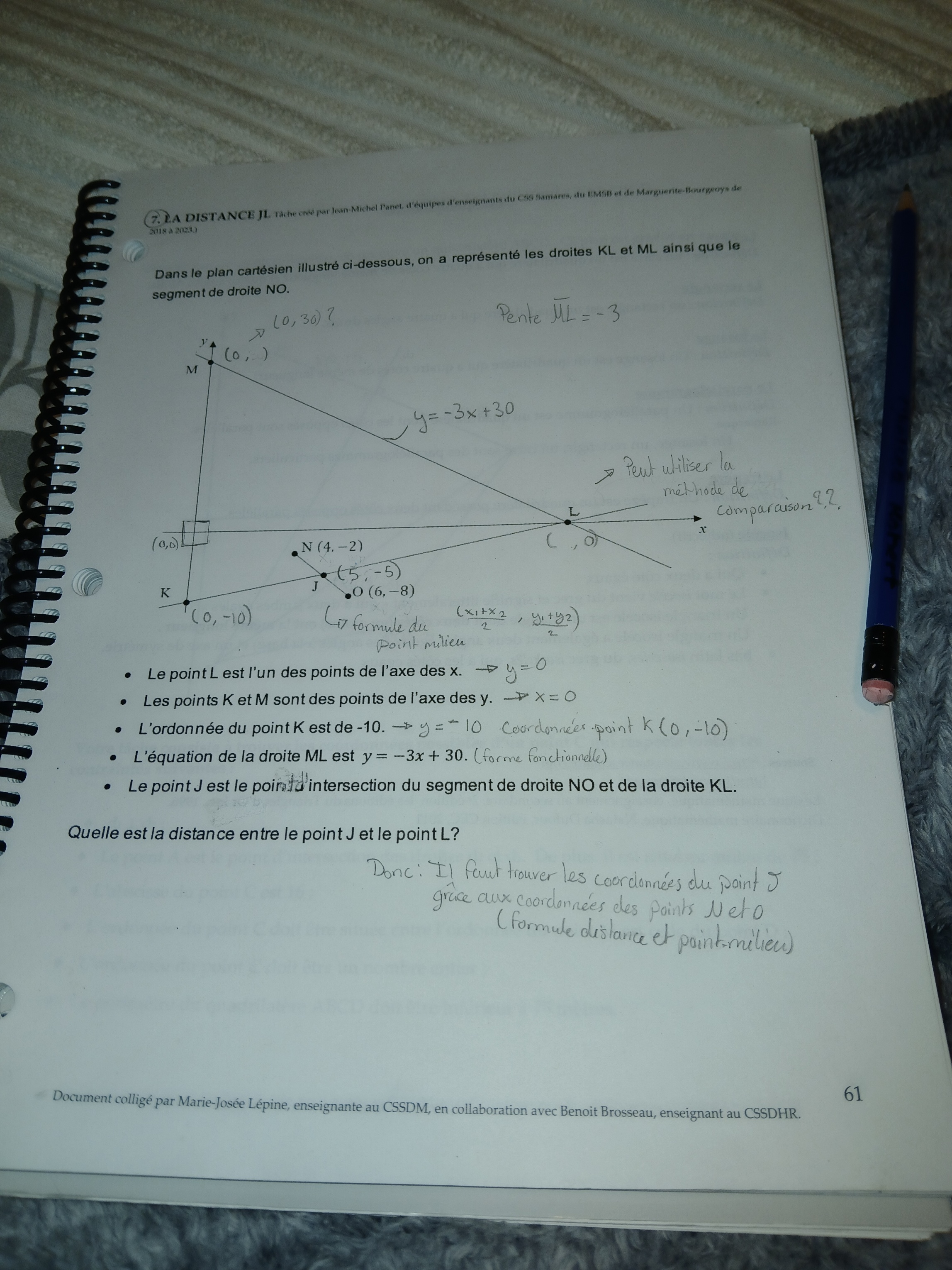 Secondaire 4 • 28jJe suis complètement bloquer. J'ai réussi à trouver les coordonnées du point J, mais je n'arrive pas à trouver les coordonnées complètes du point L.