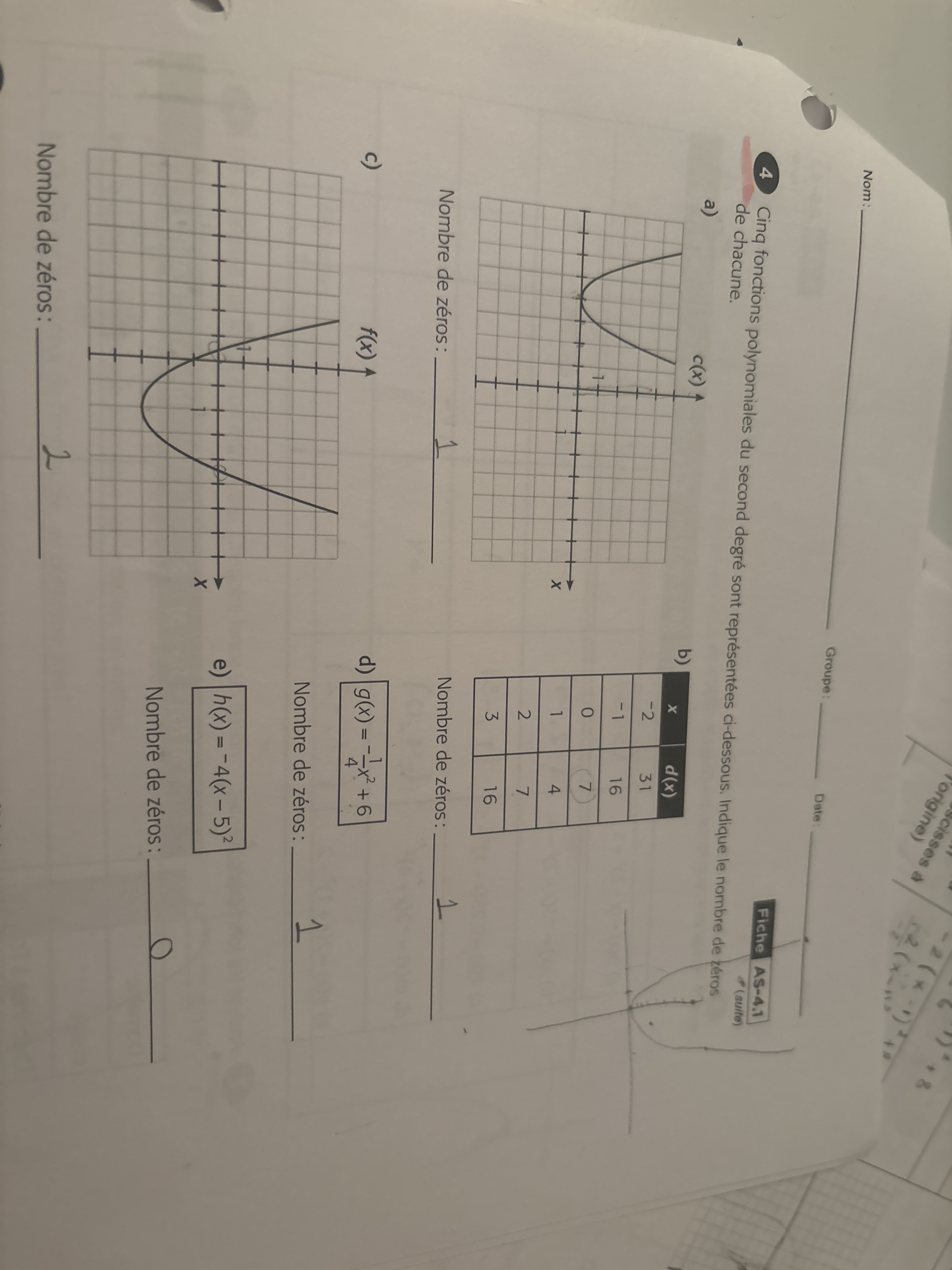 Secondaire 4 • 11mPouvez vous m’aider à résoudre ses questions je comprend pas comment faire pour trouver les zéro