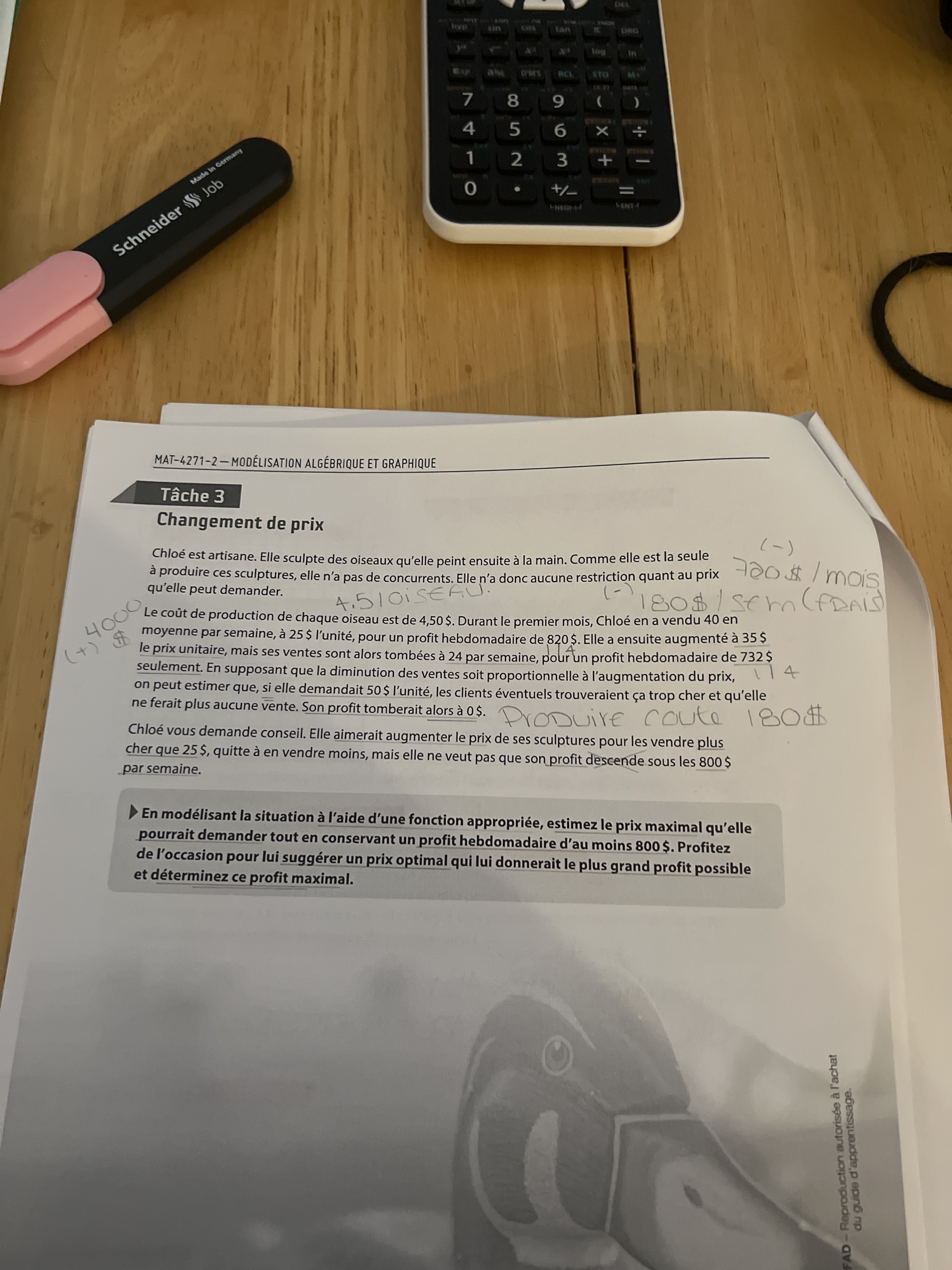 Secondaire 5 • 1aOn dirait que je comprend plusieurs trucs, mais je ne suis pas assez certaine, comment je procède, j’apporte la fonction comment? Est-ce y= ax+b ?? 🫠