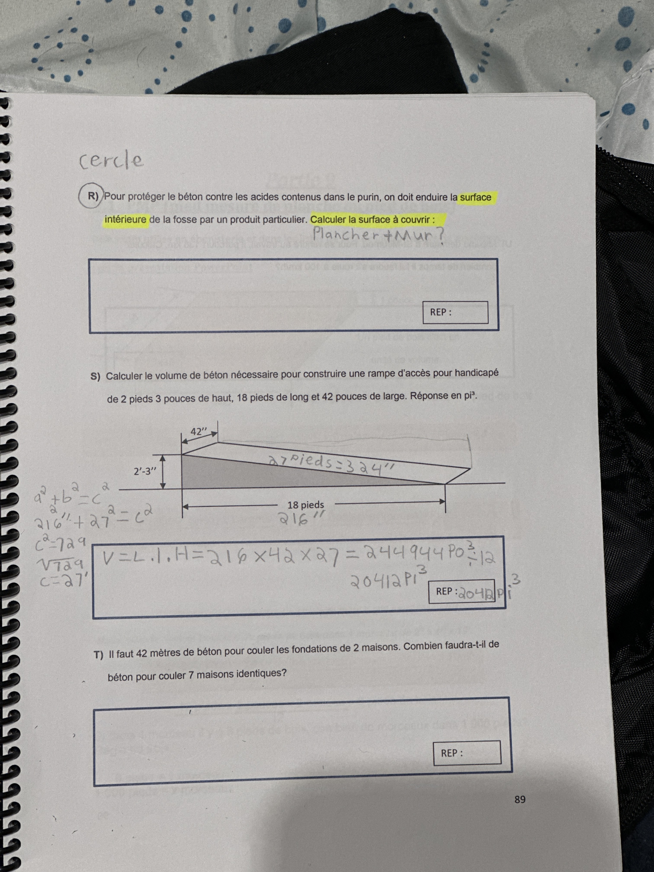 Secondaire 3 • 1aAllo prof je sais pas si j’ai bien répondu à la question Q dois je inclure la hauteur? Et il y as la question R que je ne comprends pas. Merci.Charpenterie menuiserie