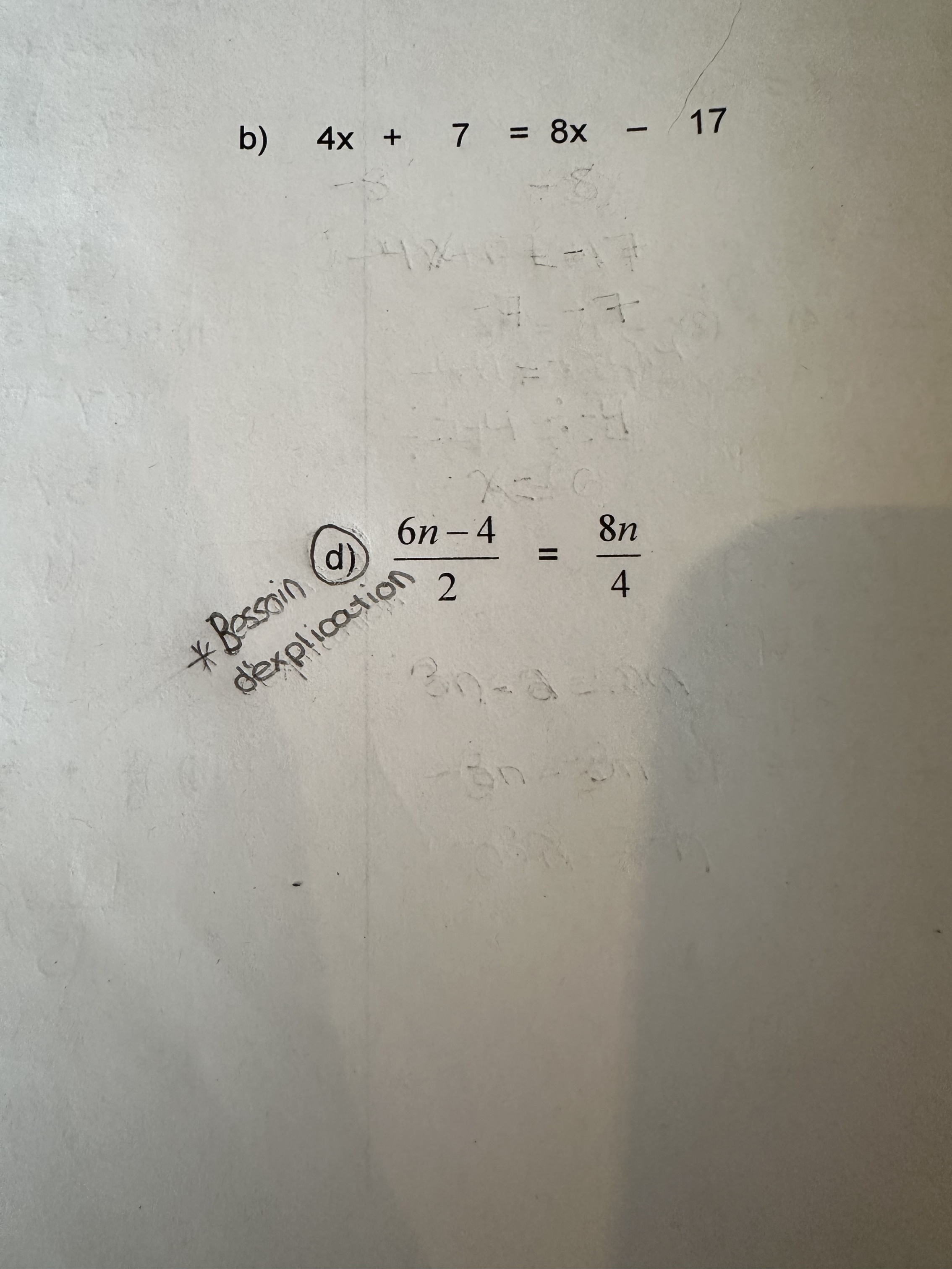 Secondaire 2 • 1aBonjour 👋, je ne comprend la matière en math en fait je la comprend mais ne comprend pas comment faire les démarche de la manière de la balance en algèbre. Les calcul déjà présent sont fait avec mon profs.