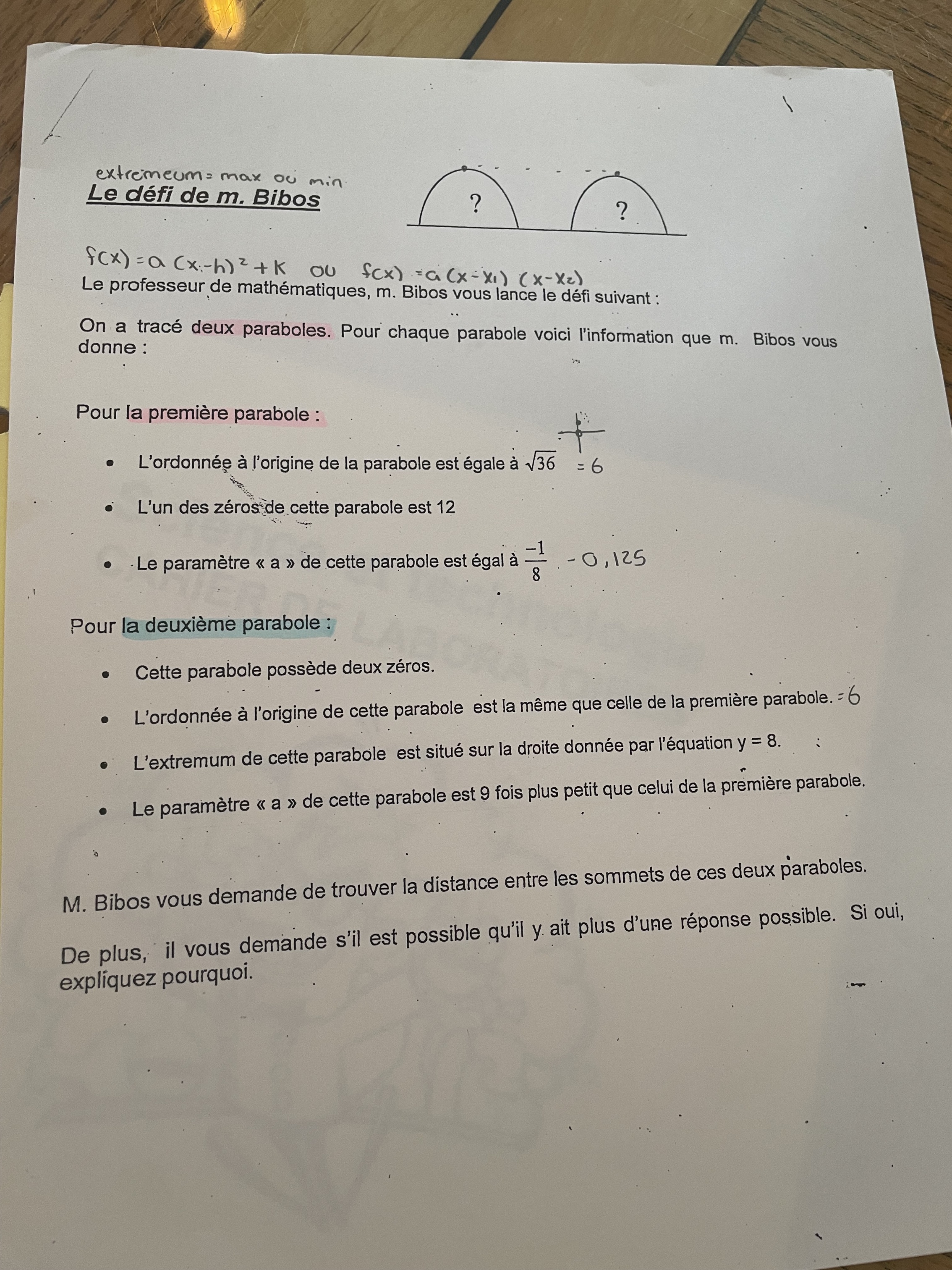 Secondaire 4 • 1aIl est écrit que c’est 9 fois plus petit que pour la première parabole