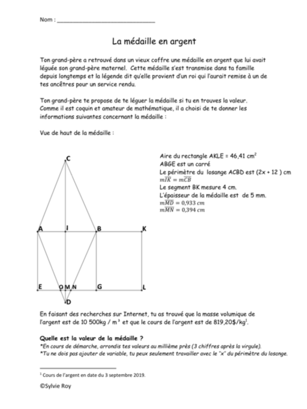 Secondaire 1 • 1aPouvez-vous m'aider avec ce problème svp?