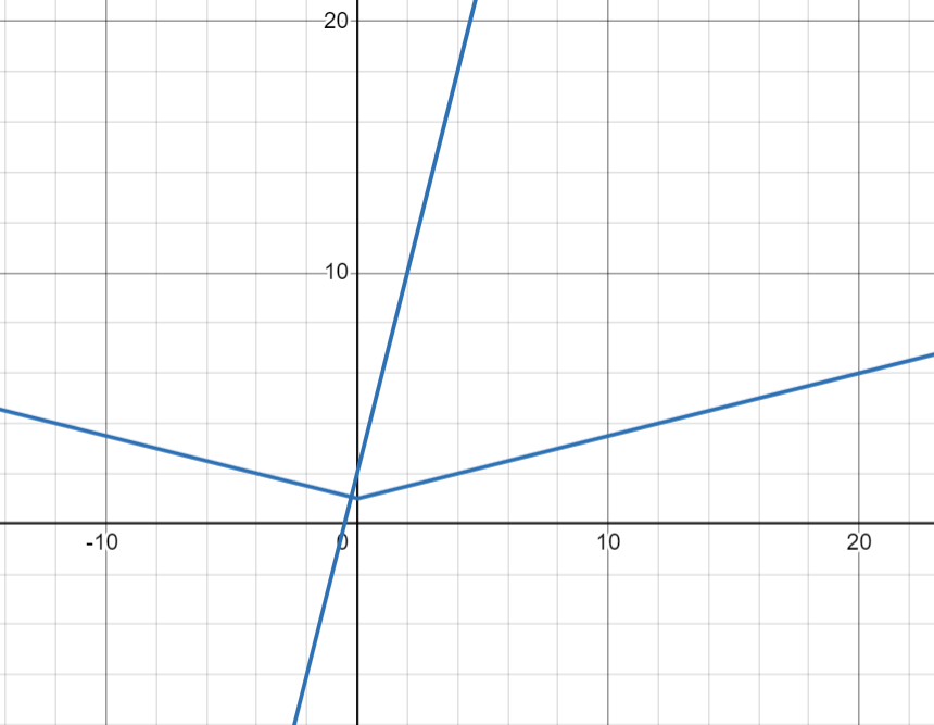 Mais, avec une droite affine et une valeur absolue, c'est plus compliquée vu que la droite a une pente. Du coup, comment savoir quand la valeur absolue est plus grande ou plus petite qu'une droite?