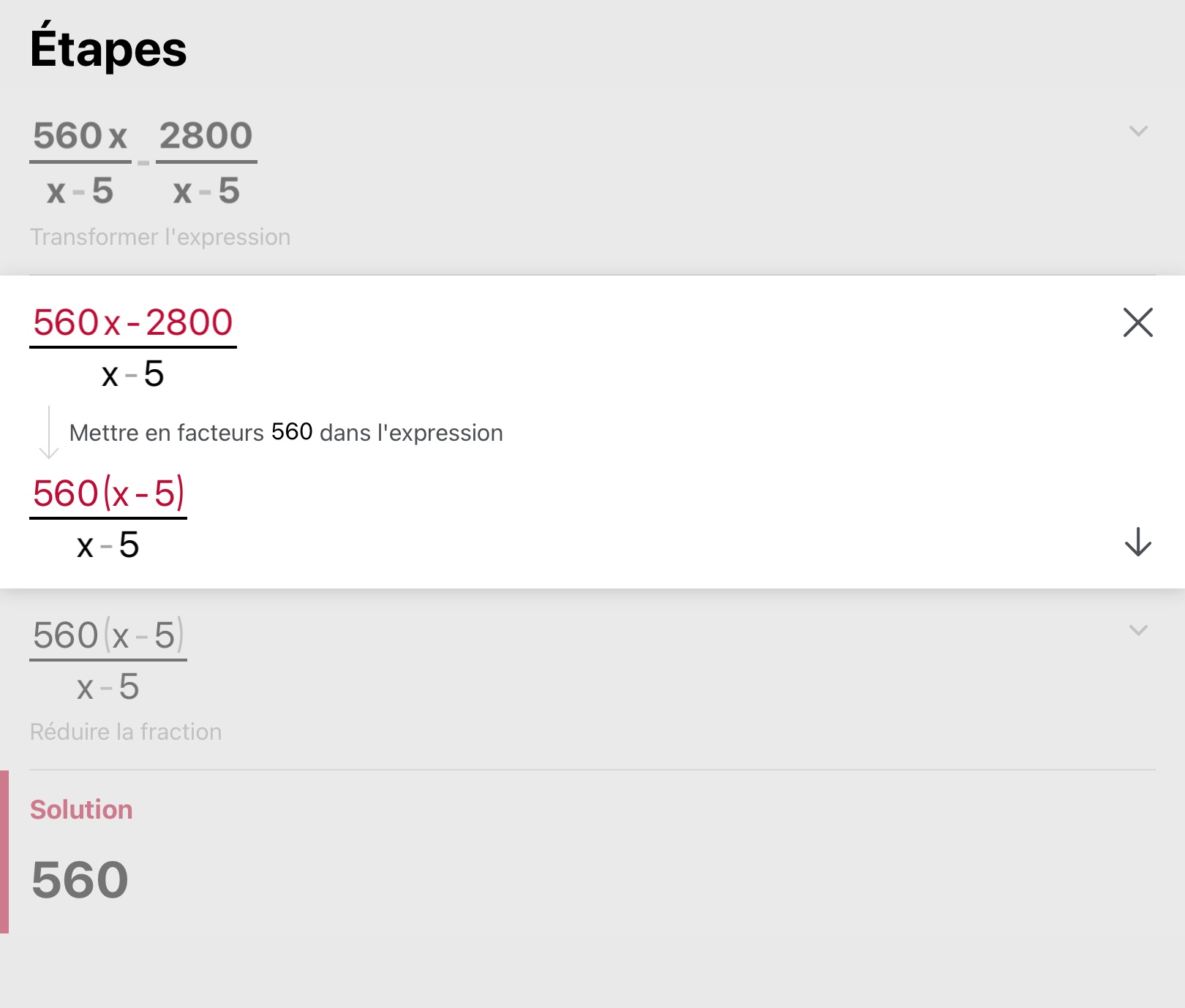 Secondaire 3 • 1aBonjour je ne comprends pas la partie de mettre en facteur le 560x. Merci