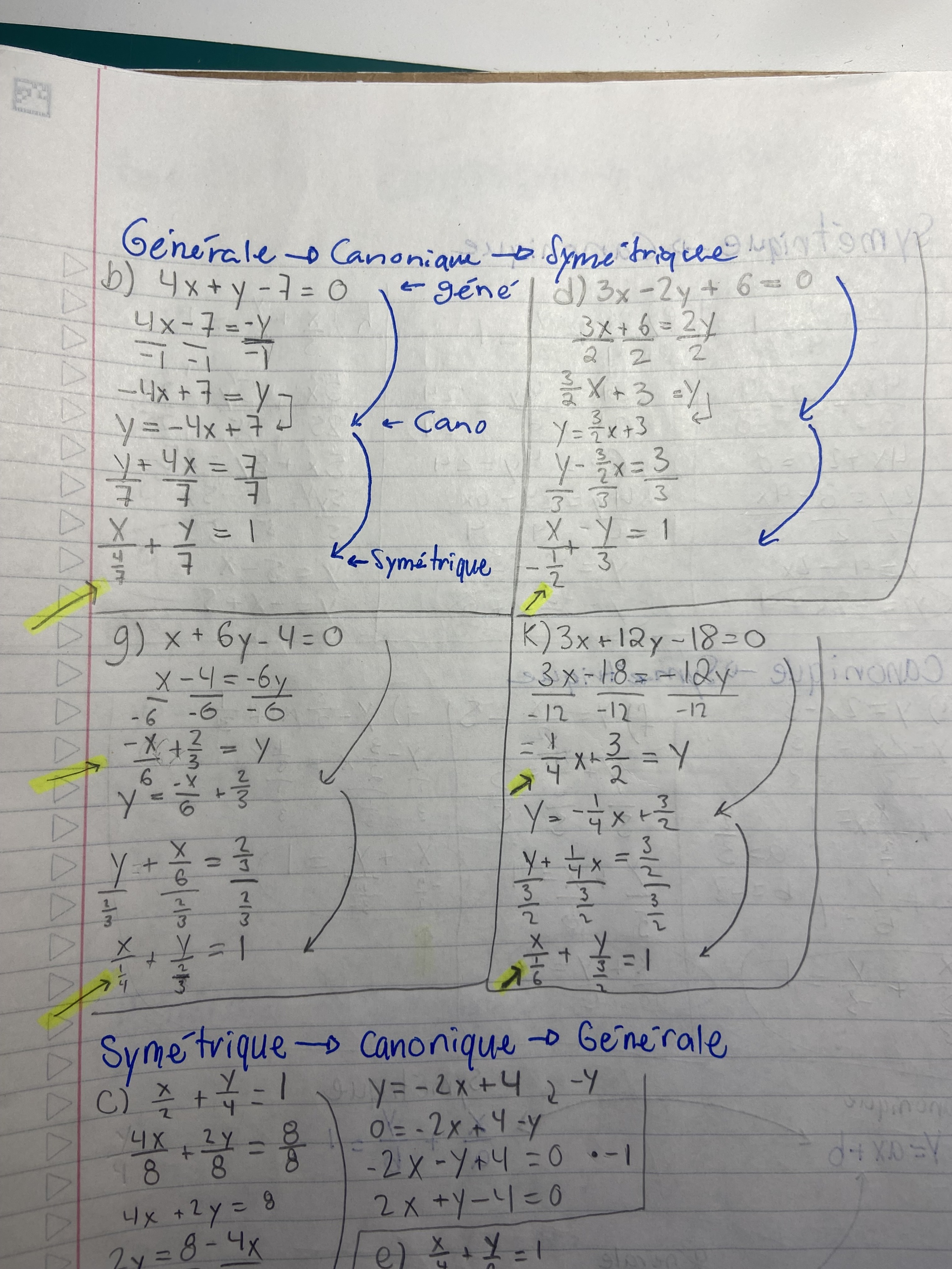 J’ai fait des flèches où exactement sont mes "erreurs" car quand je regarde mon corriger, ça me dit que pas exemple, le x/4/7 serait plutôt x/7/4 mais la réponse me donne pas ca.