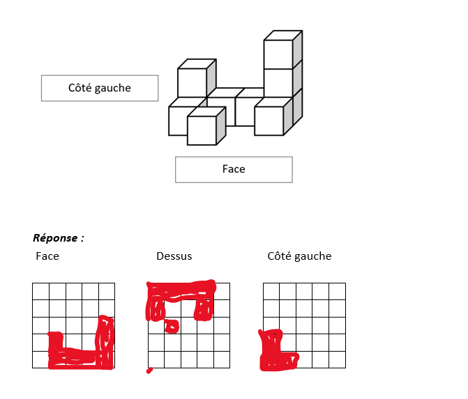 Secondaire 1 • 1atrouve moi la face le dessus et le cote gauche de cette figure