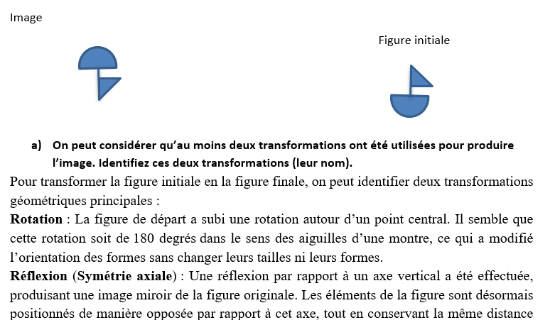 Secondaire 1 • 1aa) On peut considérer qu’au moins deux transformations ont été utilisées pour produire l’image. Identifiez ces deux transformations (leur nom).