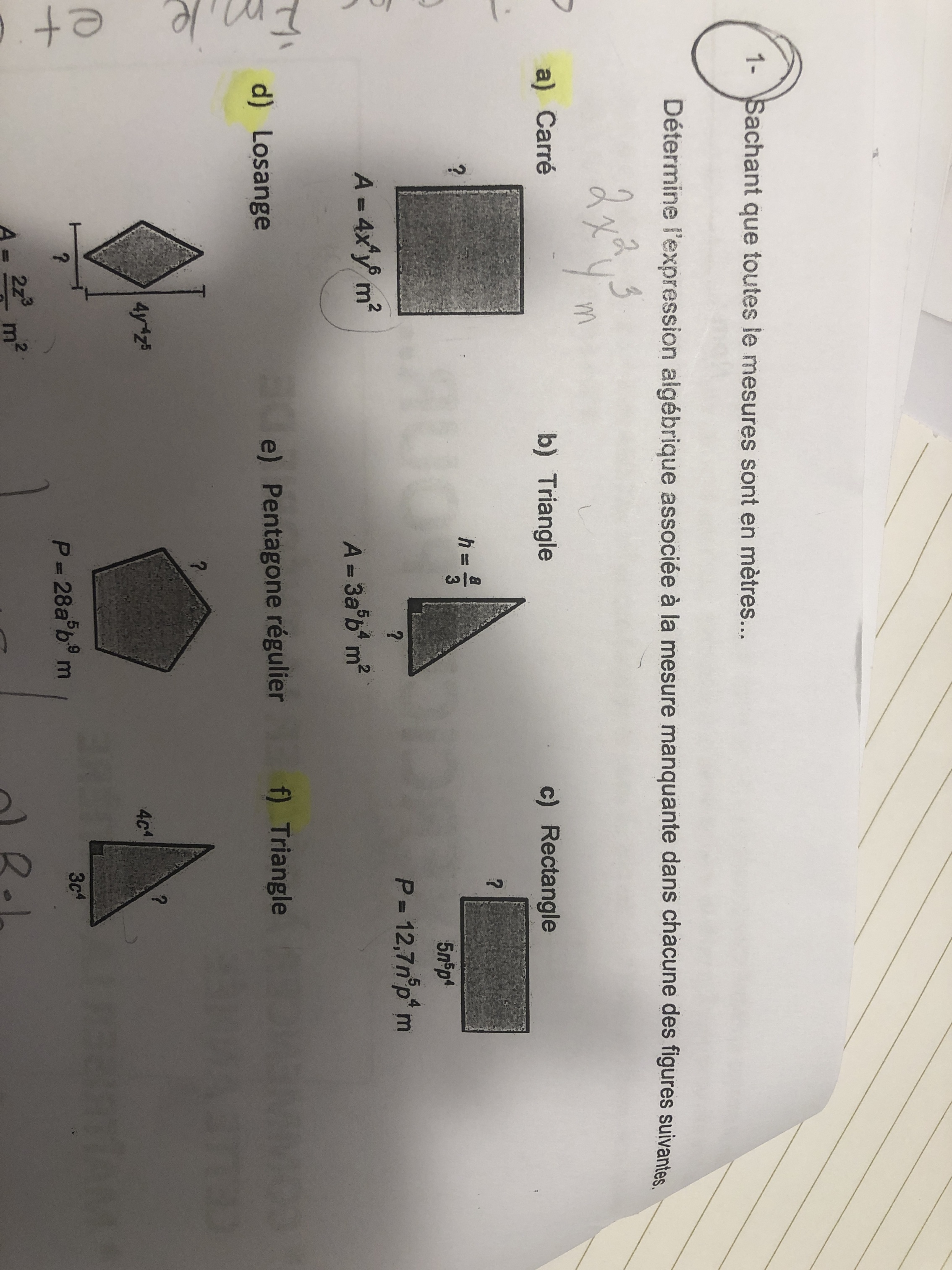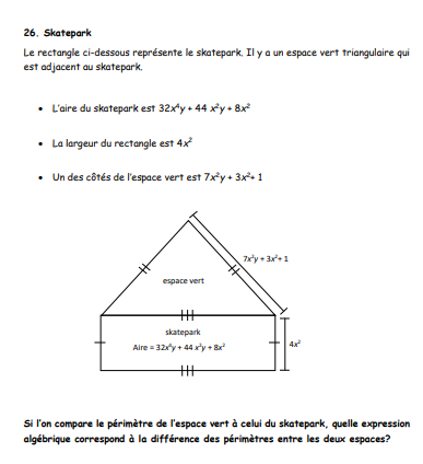 Secondaire 3 • 1aDéterminer l'expression algébrique associé à la mesure manquante dans une figure