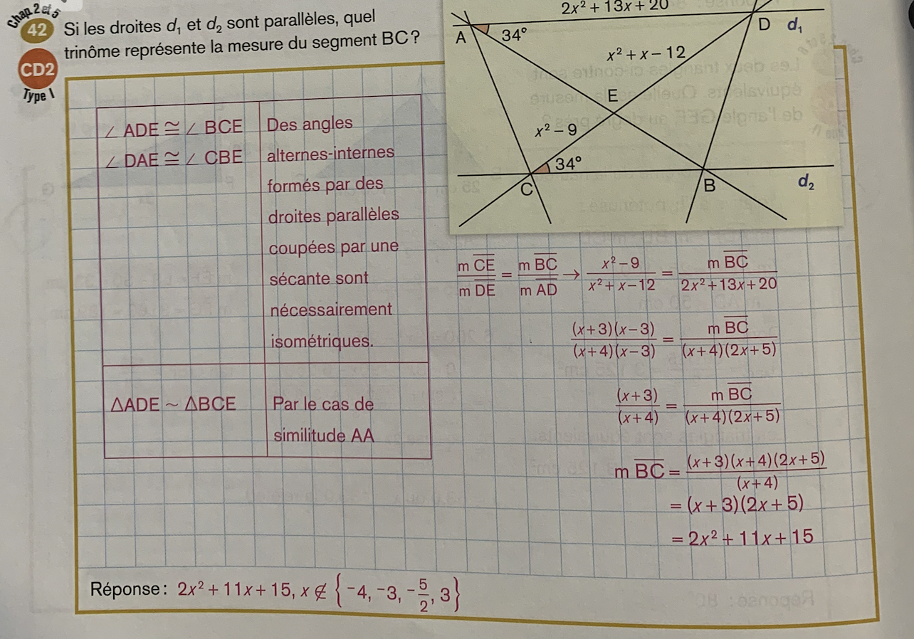 Secondaire 4 • 1aBonjour, dans ce problème, le corriger fait factoriser et ensuite réduire, mais moi j'ai fait une division polynomial, est-ce que ses toujours correct?