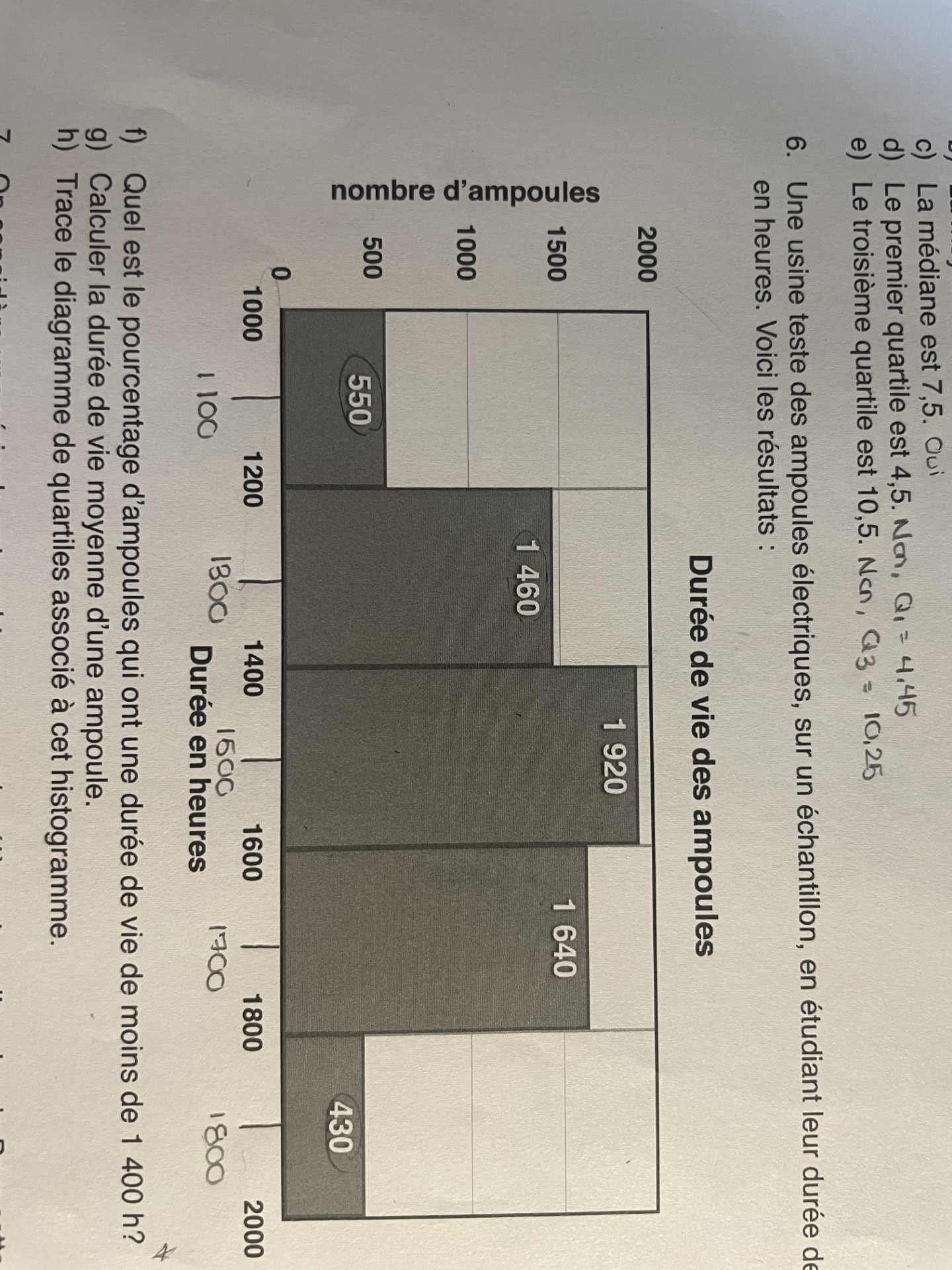 Secondaire 3 • 1aBonjour, je ne comprends pas bien comment lire (trouver le max, le min, la médiane, Q1 et Q3) dans ce genre de tableau pour pouvoir faire un histogramme.