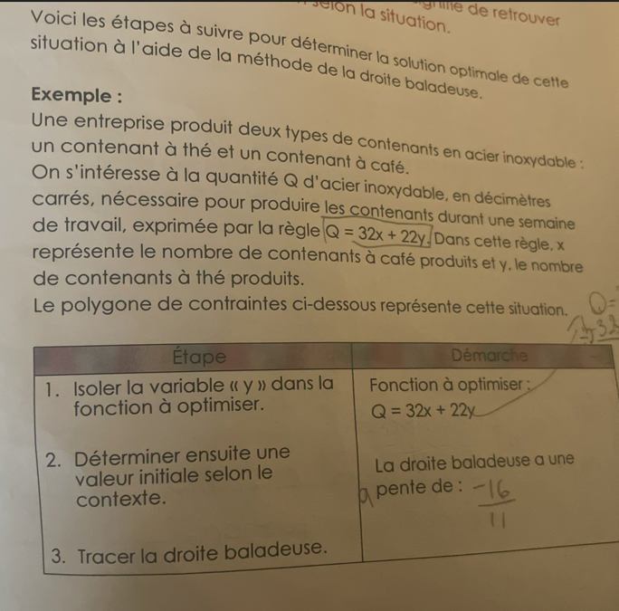Secondaire 5 • 1aBonjour j’aimerais vraiment que quelqu’un me donne des exemples sur les polygone de contrainte et sur la droite baladeuse car mon examen c’est jeudi et je ne m’en rappelle vraiment plus comment faire.. Je suis même allée consulté les fiches sur allô prof mais ça ne m’aide pas à m’en rappeler
