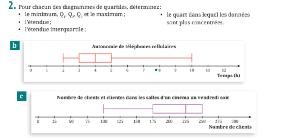 Ma deuxième question est en lien avec l'image que j'ai ajoutée. En fait, quand je dois trouver le quart dans lequel les données sont plus concentrées, est-ce qu'il s'agit du 3e ou plutôt du 4e quart?Merci beaucoup d'avance!!