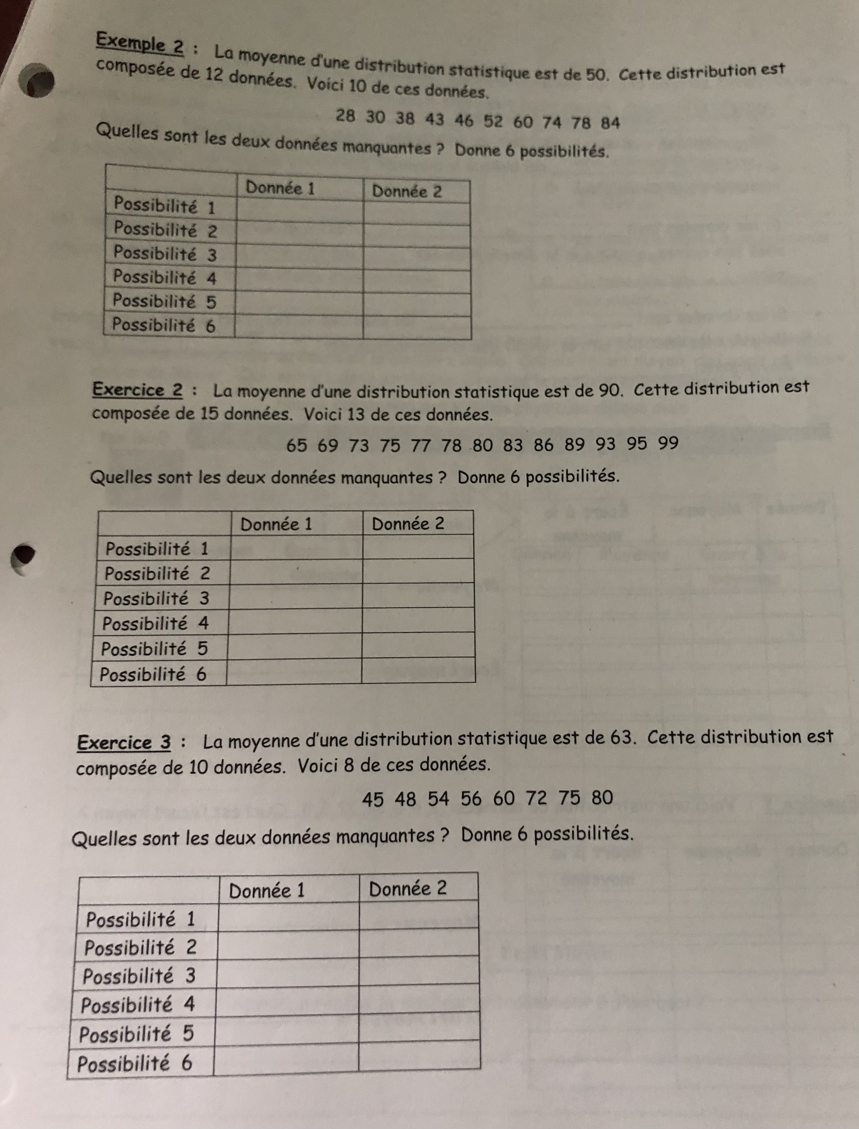 Secondaire 4 • 1aBonjour j’ai essayée de faire la moyenne arithmétique mais j’arrive à pas à trouver la donne manquante au c) est que je devais ajouter 130?Pouvez vous m’aider en annotant la photo svp