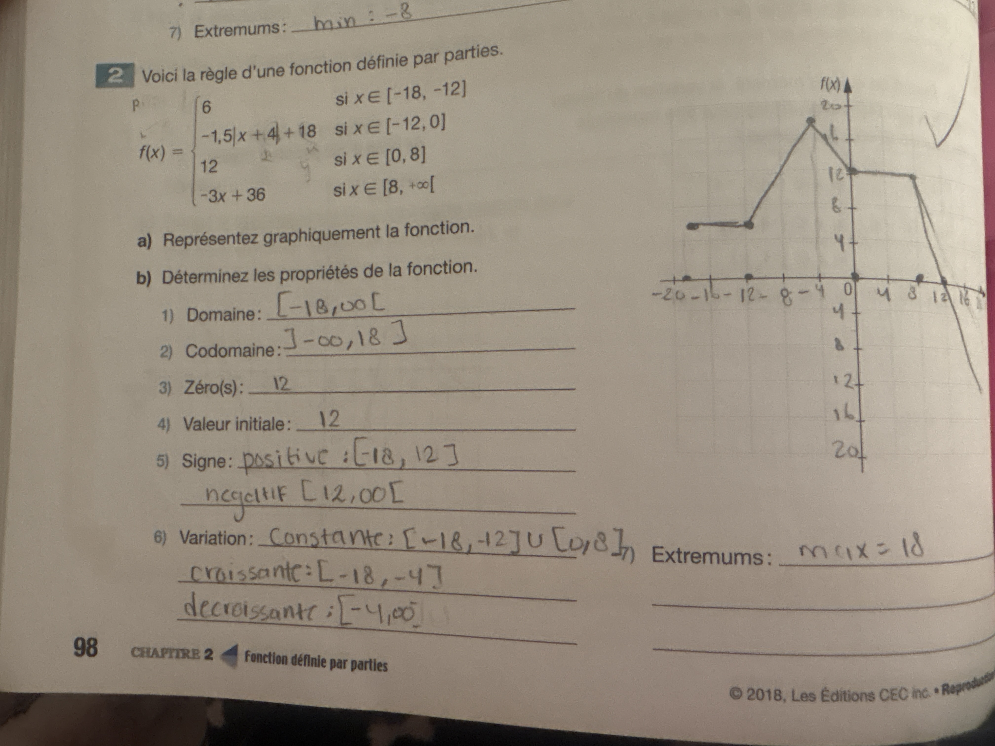 Secondaire 5 • 2mjesuis en math sn de 5 j’ai pas compris pour la fonction defenie par partie quand c’est -3x +36 comment je place dans le graphique j’ai copier du tableau mais j’ai pas compris pour le -3x+36