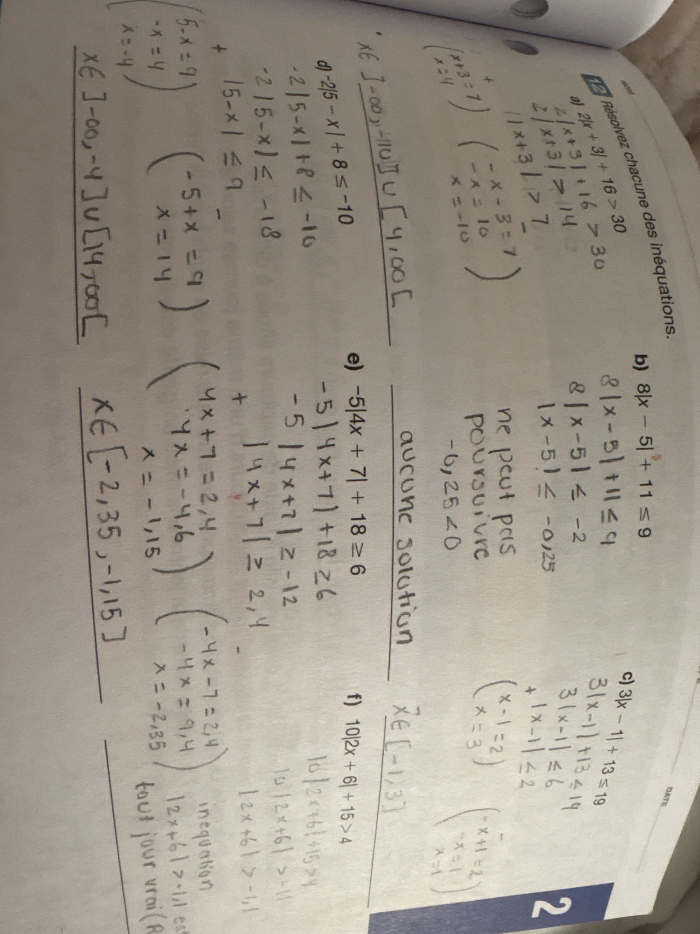 Secondaire 5 • 2mBonjour je suis en math sn de 5 et je comprend pas comment savoir écrire la réponse de l’inéquation d’une fonction valeur absolue comme dans ses questions je comprend pas c’est quand que y’aura un infinie et quand non