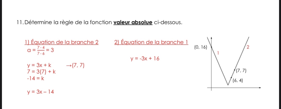 Secondaire 5 • 2mBonjour! J’ai trois questions par rapport à trois numéros. Pour le premier, comment est ce que je peux savoir qu’il faut soustraire les x à la fin pour obtenir le temps, c’est quoi l’explication? Pour le deuxième, je comprends juste pas trop ce qu’il se passe et ce qu’il faut faire. Pour le troisième, comment est ce qu’on a fait pour connaître le K de la branche 1? Aussi, est ce que il y a des réflexes à prendre pour la fonction valeur absolue? J’ai de la difficulté à savoir quoi faire pour chaque numéros et j’ai un examen lundi. :(